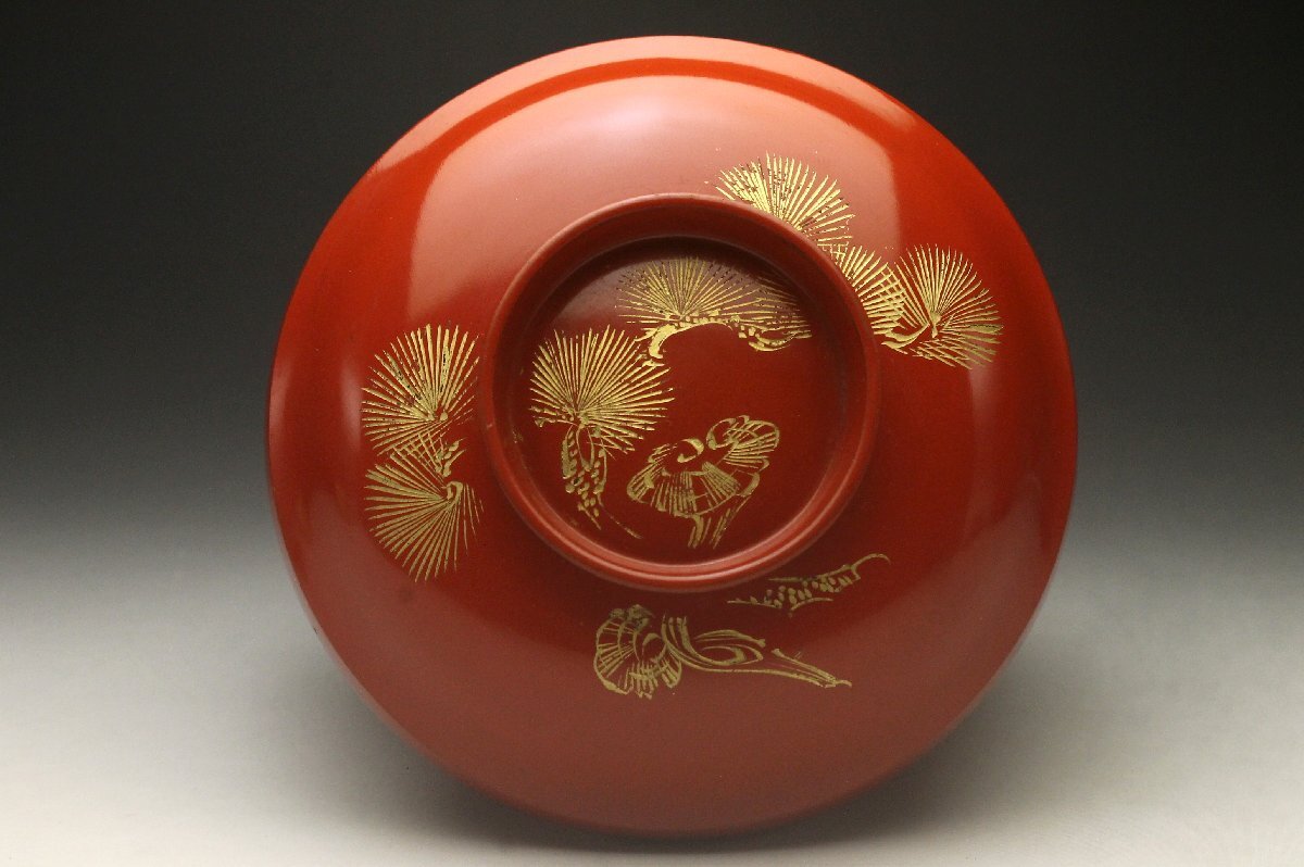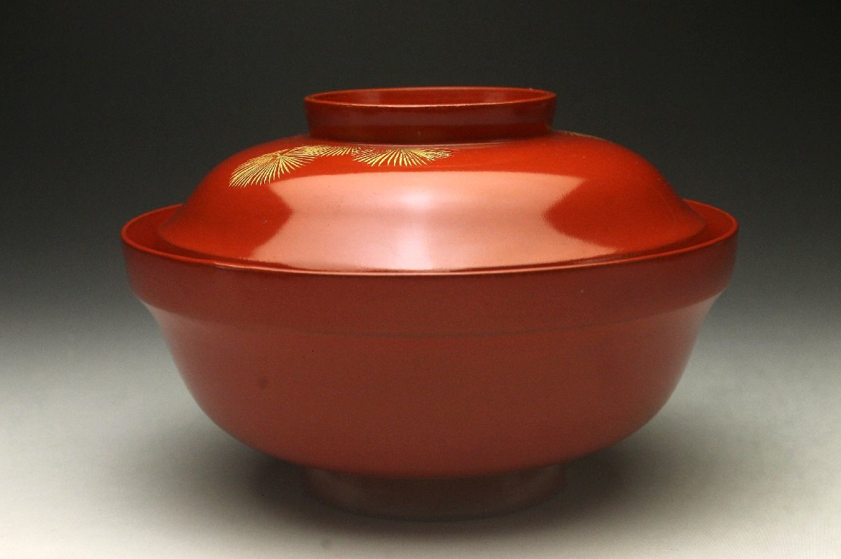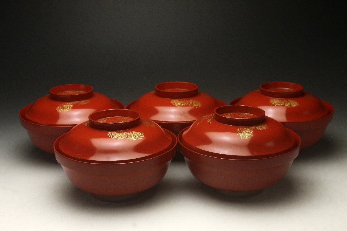 【余韻】 時代物 天然木製 沈金松文 吸物椀揃(5客)★懐石道具 茶懐石<同梱可>