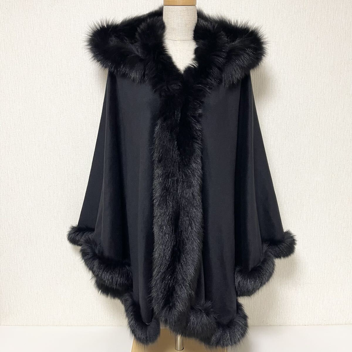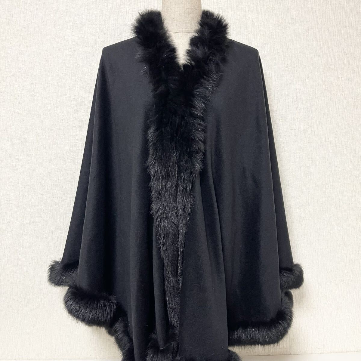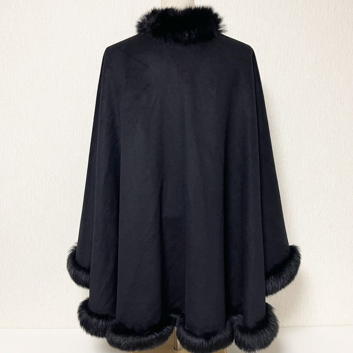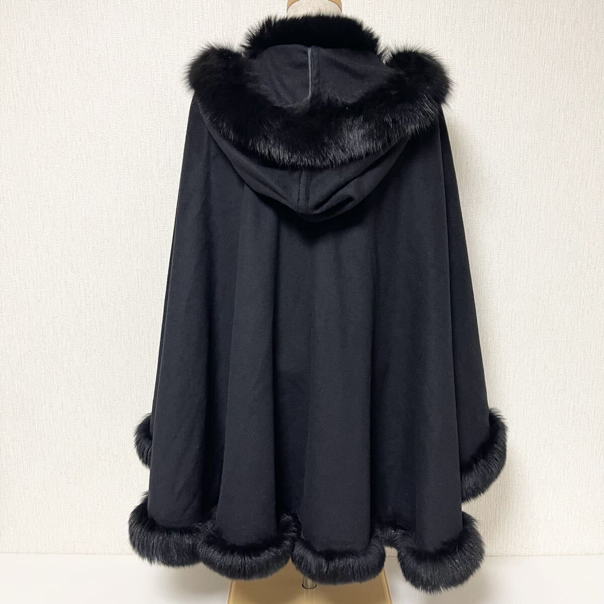 BALMAIN バルマン フード付き カシミヤ ファー ケープ ポンチョ 11 美品 L カシミア100% ブラック