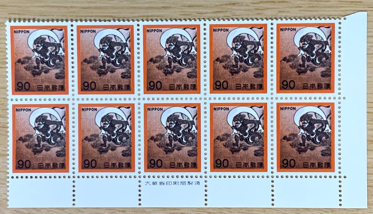 風神 90円 色検知 未使用 ブロック10枚 銘版付 K262