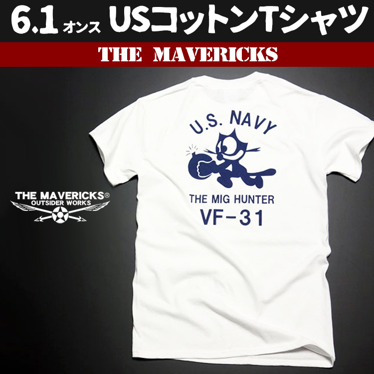 Tシャツ XS メンズ 半袖 ミリタリー アメカジ 米海軍 黒猫 CAT モデル MAVERICKS ブランド/ 白 ホワイト