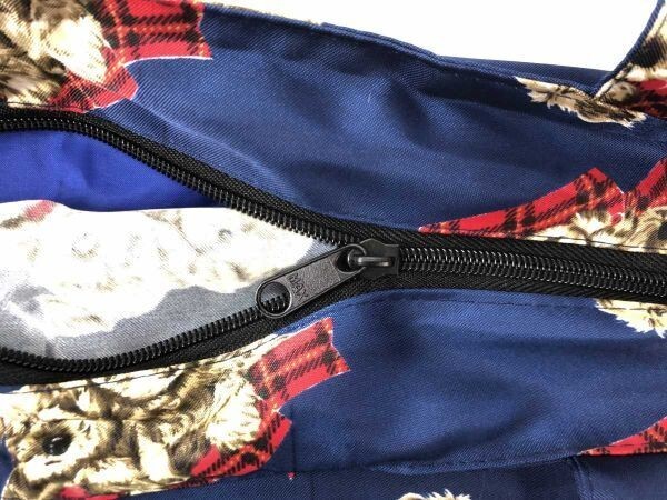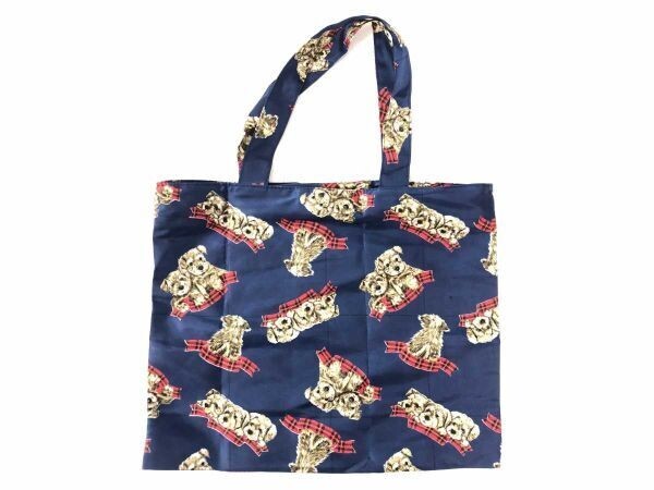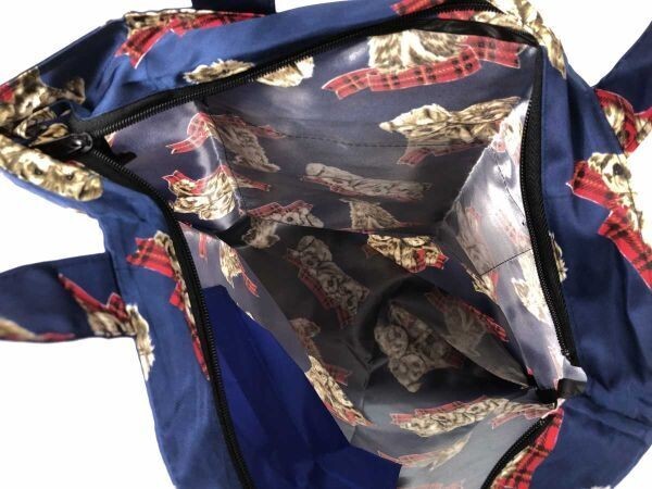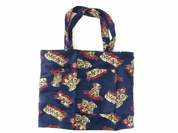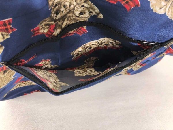トラッド クラシック 古着小物 トイプー プードル 子犬 プリント ミニポケット付き ハンド トートバッグ レディース ファスナー付き 青です。