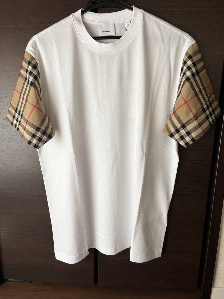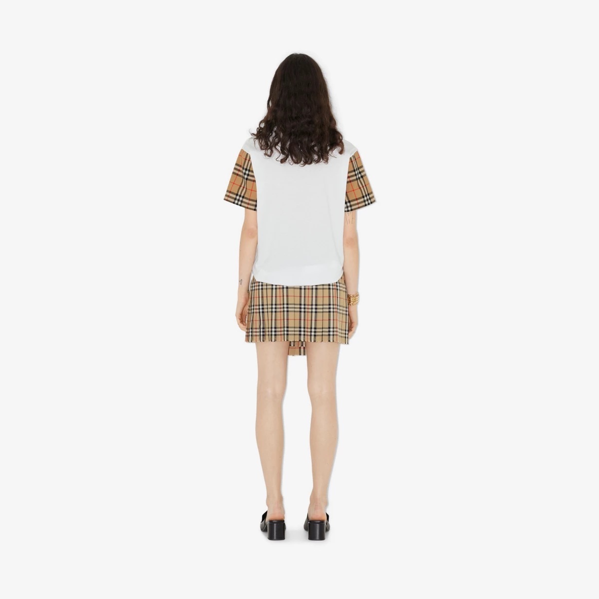 コントラストの効いたバーバリーチェックの袖をフィーチャーしたコットンジャージーTシャツ。オーバーサイズフィットに仕立てたクルーネックスタイル。