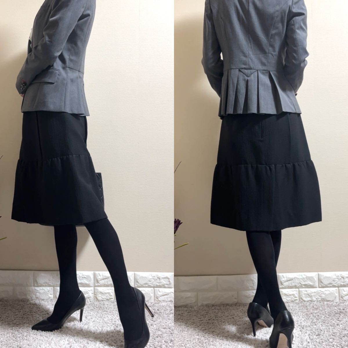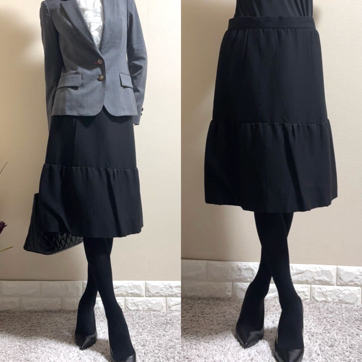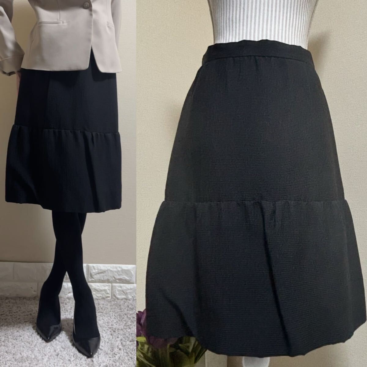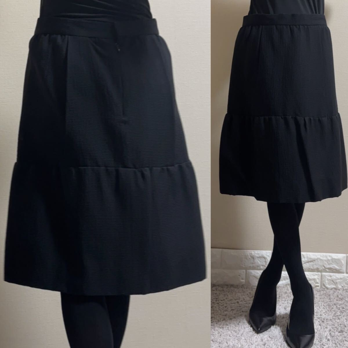 高級感溢れる漆黒の織り生地、シルク裏地のフォーマルスカートです。