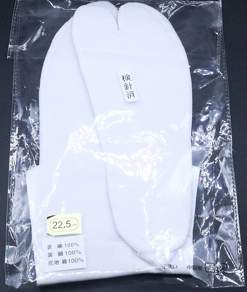 本麻足袋 夏用 綿裏 22.5cm 白 新品 着付け小物 レディース 麻100% 綿100% 単衣 夏着物シーズン S9708