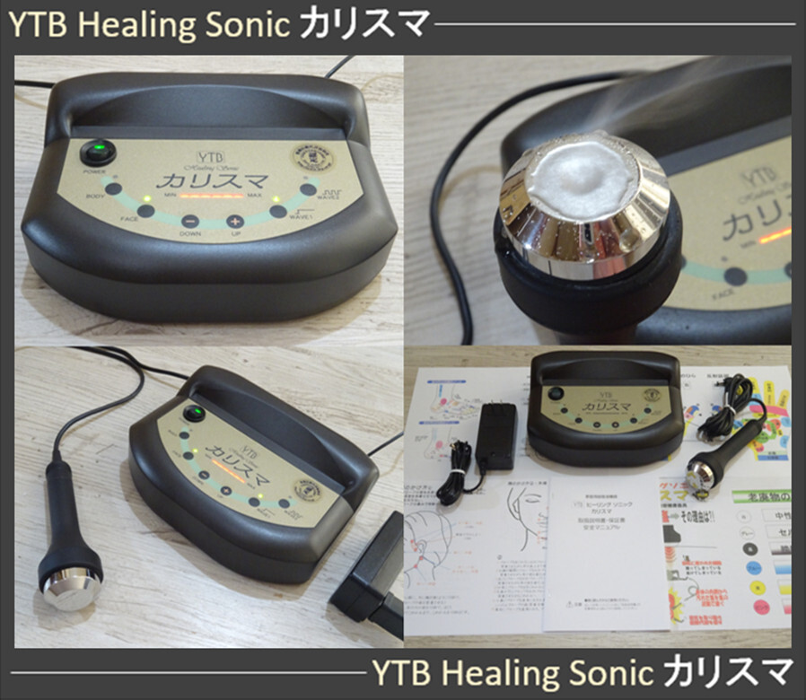 YTB社の超音波美容器『 ヒーリングソニック カリスマ 』です。カリスマ専用サロンで実際に使用されている稀少なお品です。毎秒200万回の超音波振動が氣の波動のように細胞に共振共鳴しストレスで傷ついた細胞に働きかけ、新陳代謝を促し健康で美しい体にしてくれます。