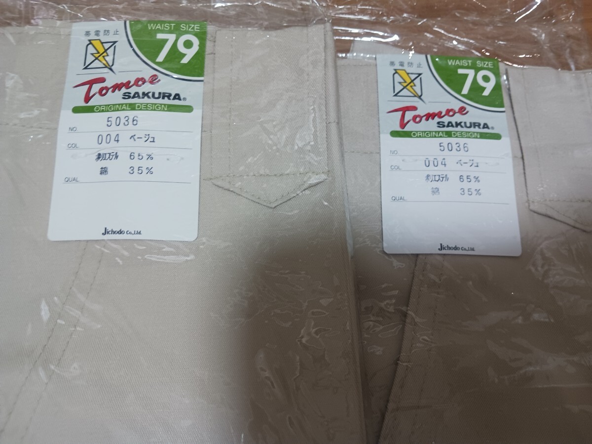 5173 自重堂 5036|エコ製品制電カーゴパンツ|ベージュ|W79㎝×2本|春夏|Tomoe SAKURA|新品未使用|帯電防止|綿ポリ混紡|作業ズボン|制電