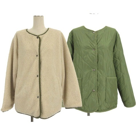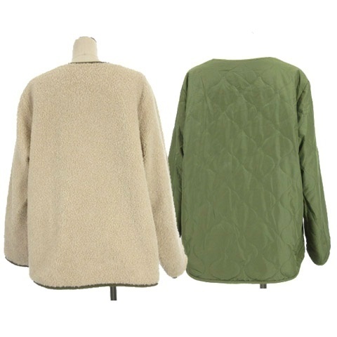 イッカ ikka リバーシブル ボア ジャケット ホワイト カーキ L 250829E レディース