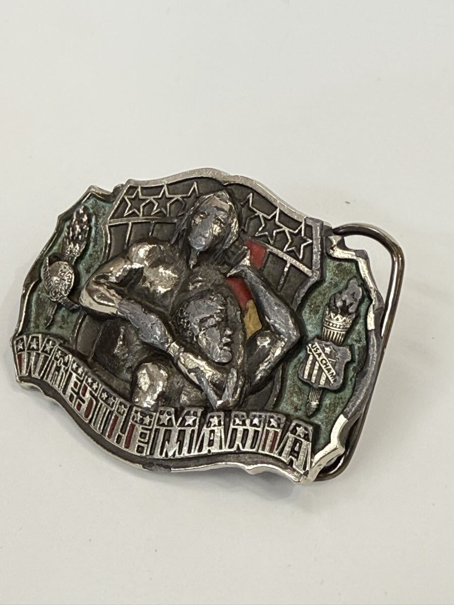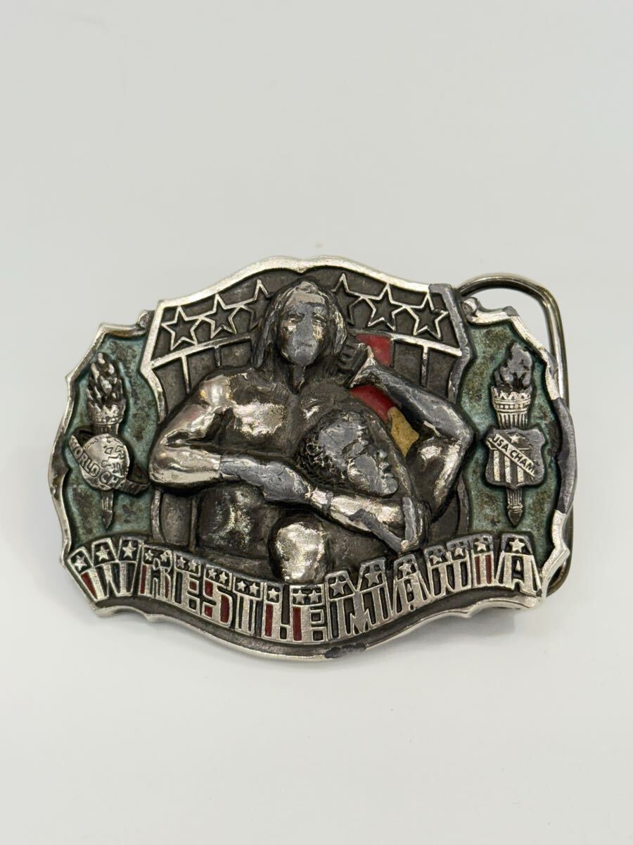 WWE(ワールド・レスリング・エンターテインメント)のイベント「レッスルマニア」をモチーフにしたベルトのバックルです