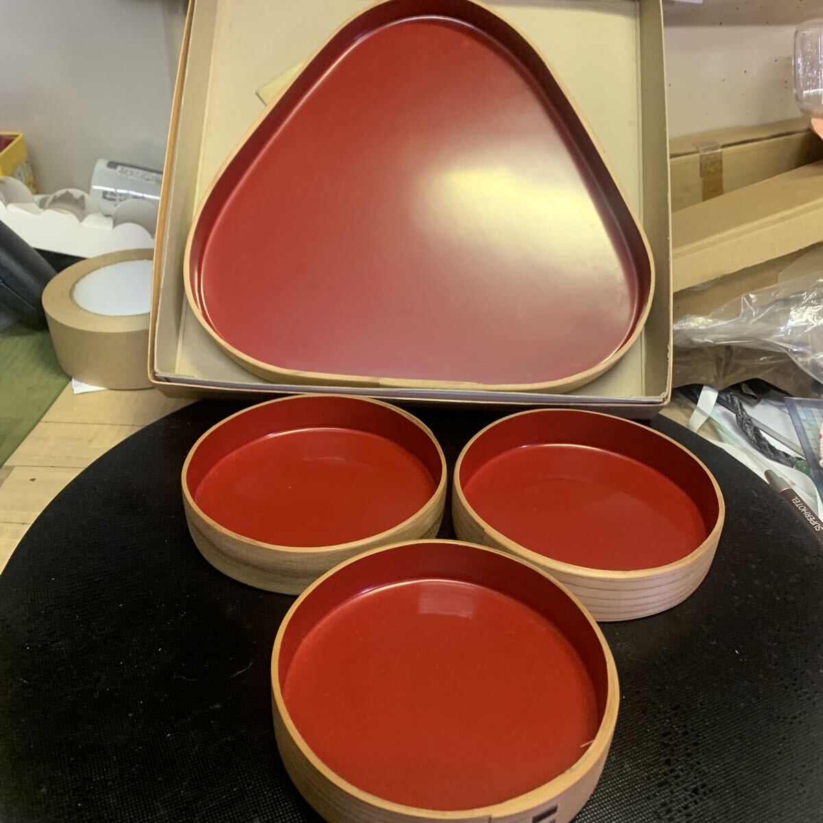 大きいお盆約26センチ小さい皿直径約12センチ、長期保存品のため多少の汚れ等があります。ノークレームノーリターンでお願いします。