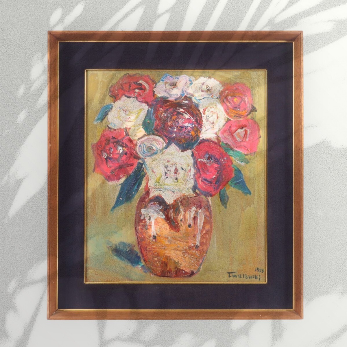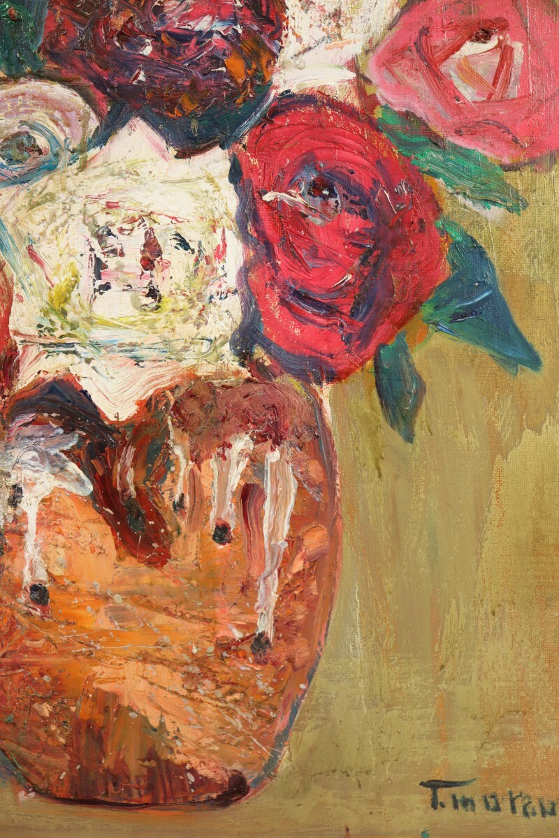 厚く塗られた絵の具が花びらの質感や立体感を強調し、