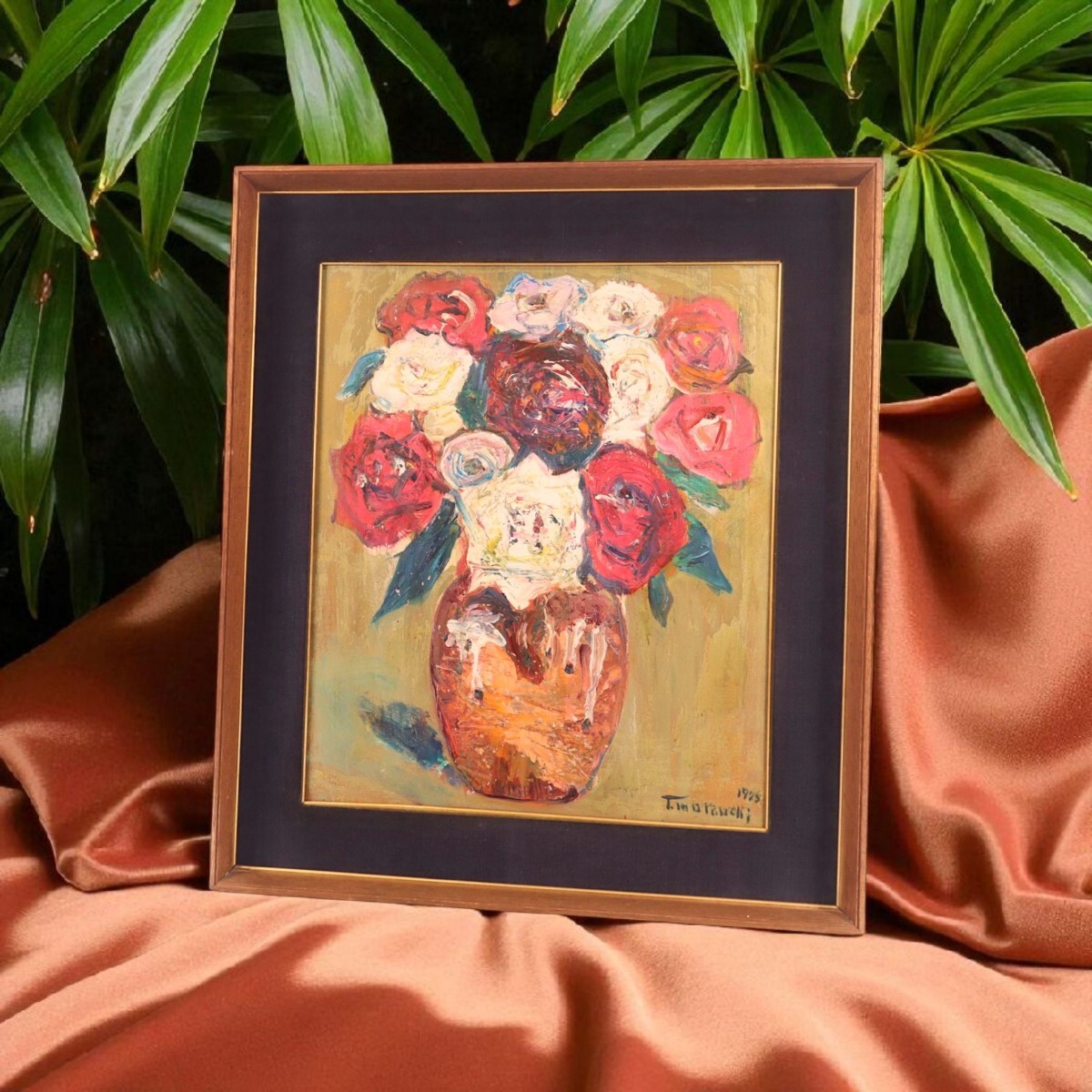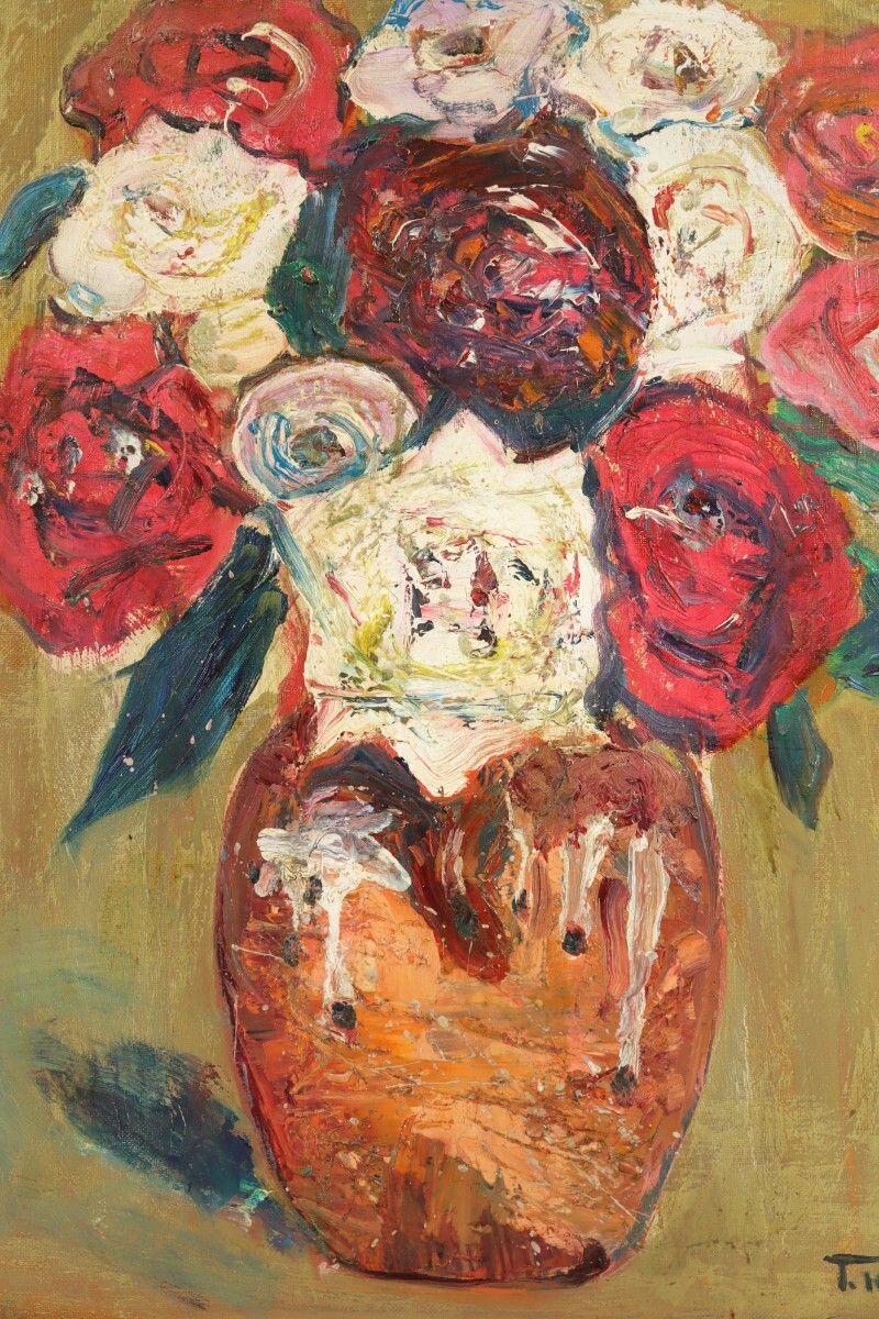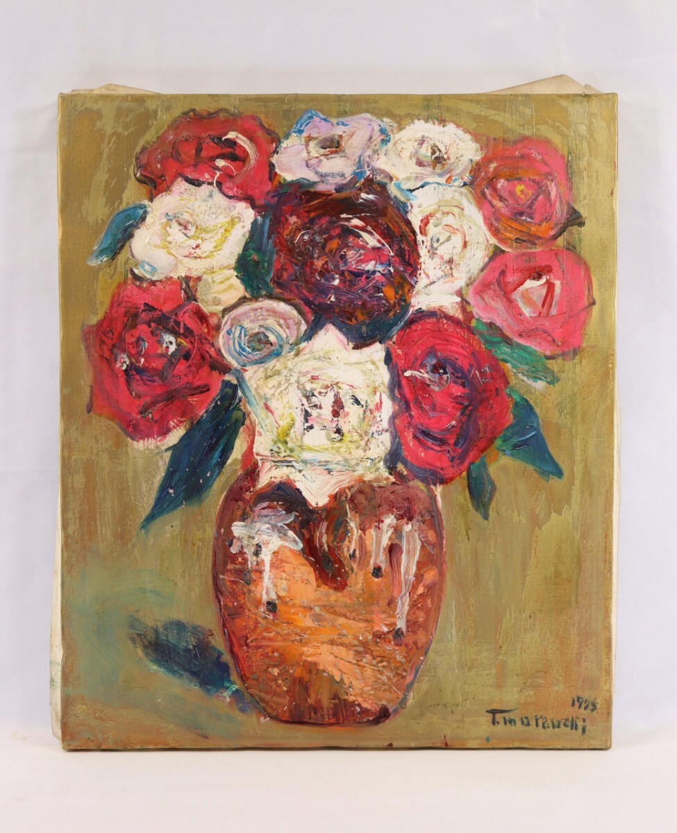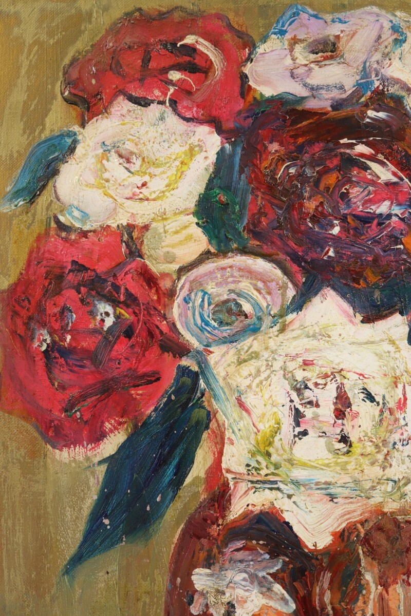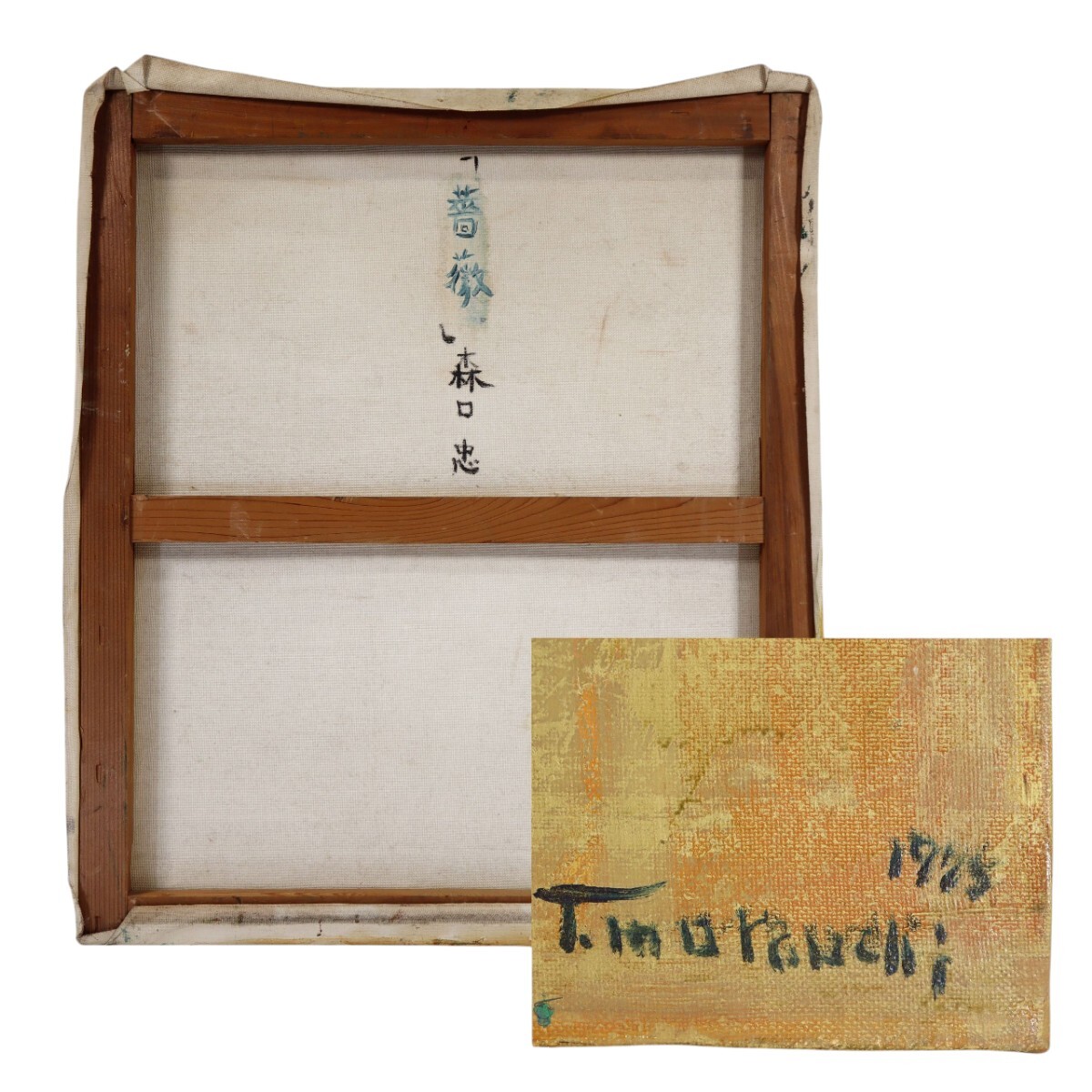 真作 森口忠 1975年油彩「薔薇」画寸 F10 兵庫県出身 現代美術集団運営委員 小磯良平に師事 素朴な筆致と温色の存在感あるバラの花 11357