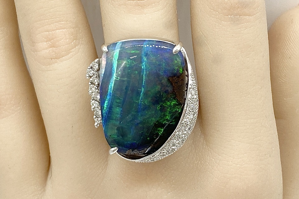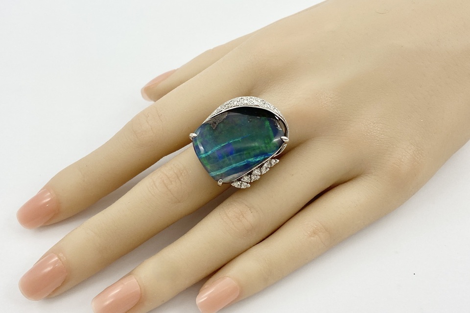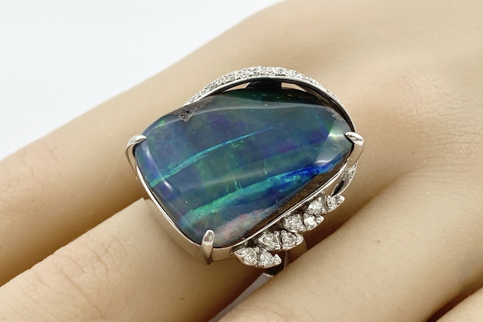 品名 | 【Boulder Opal】 Pt900ボルダーオパール ダイヤモンドリング |
