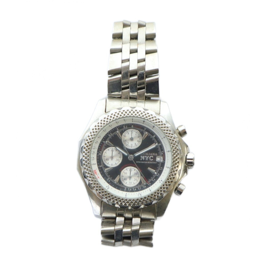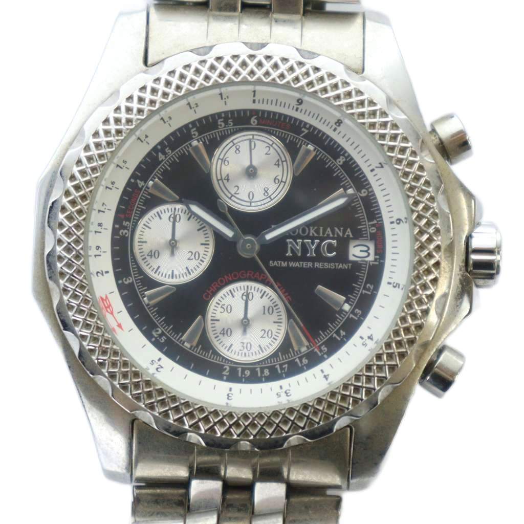 ブルッキアーナ BROOKIANA NYC ジャンク品 腕時計 ウォッチ クォーツ クロノグラフ カレンダー付き 黒文字盤 シルバー色 BA-1622