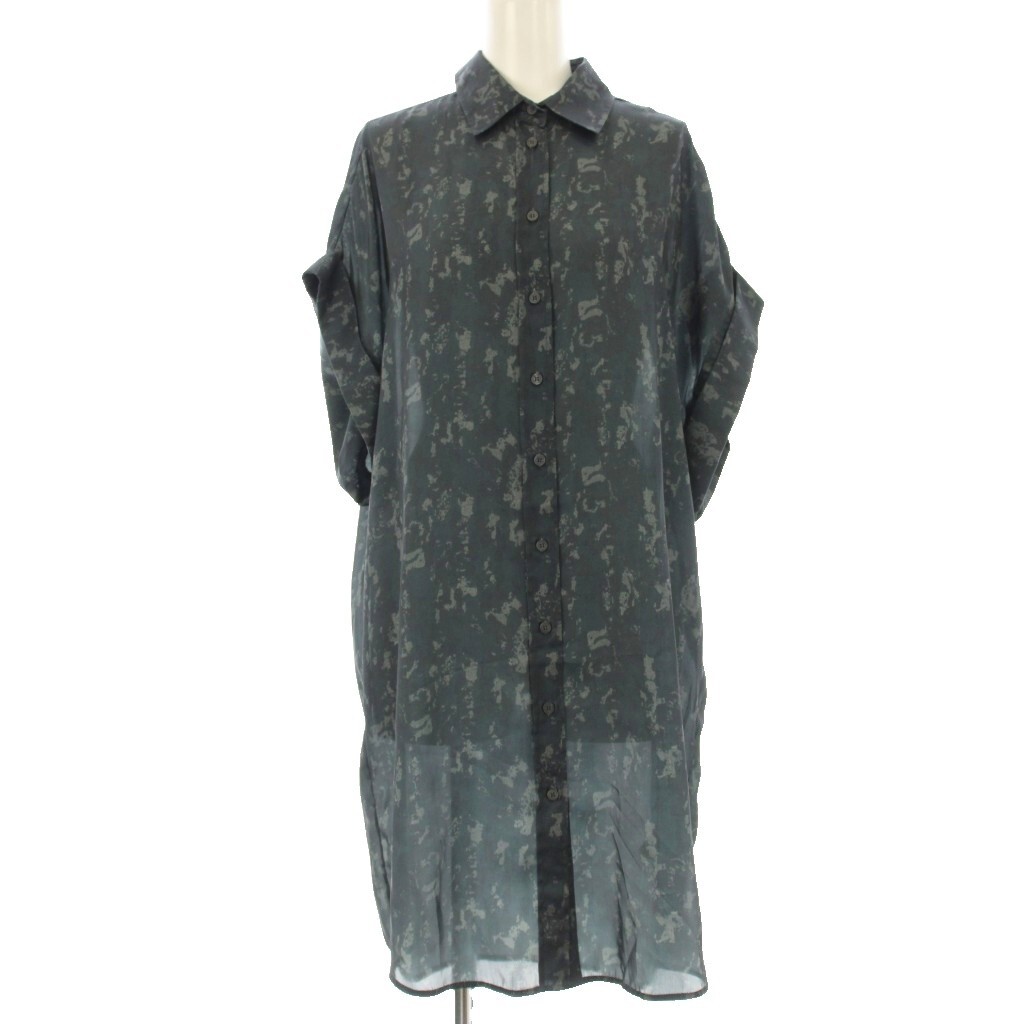 ディーゼル DIESEL シャツワンピース ブラウス ロング 半袖 総柄 グレー /OR レディース