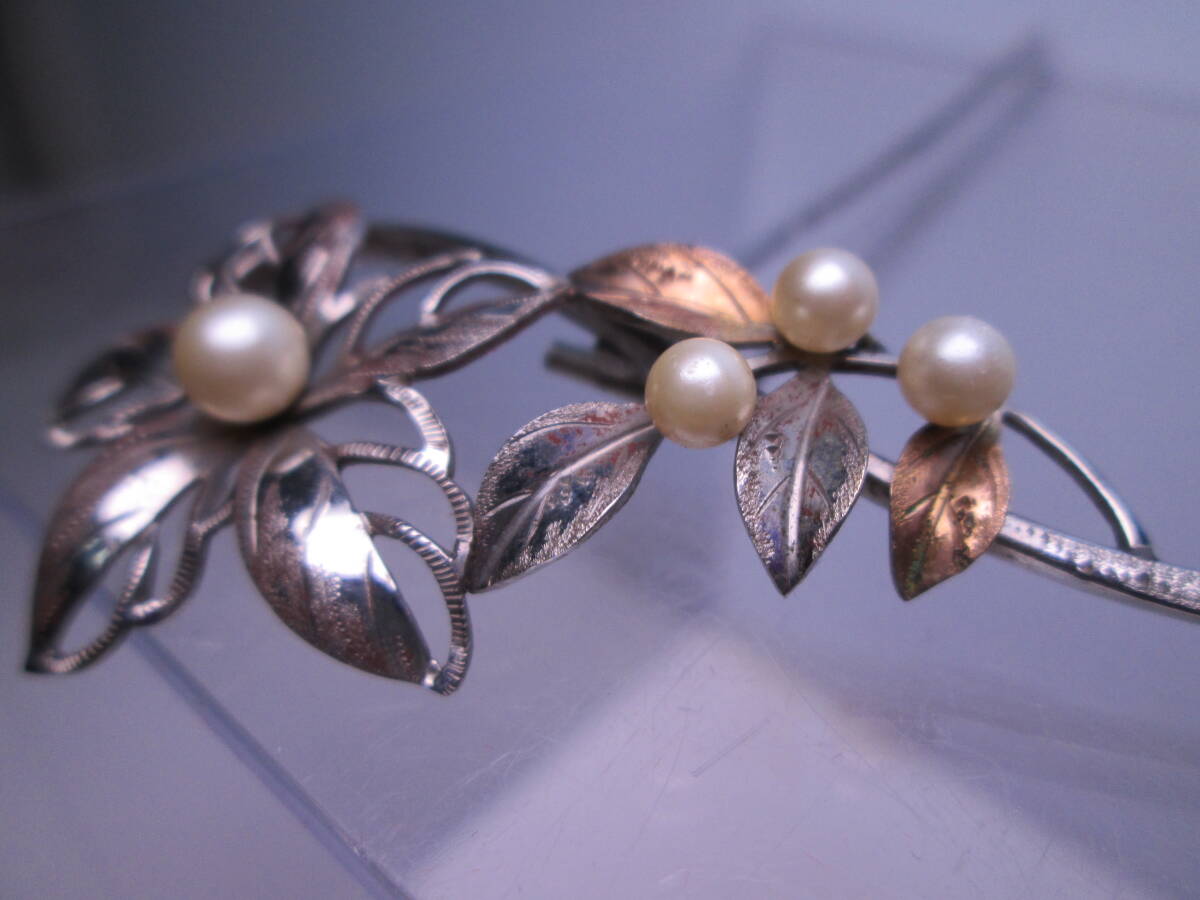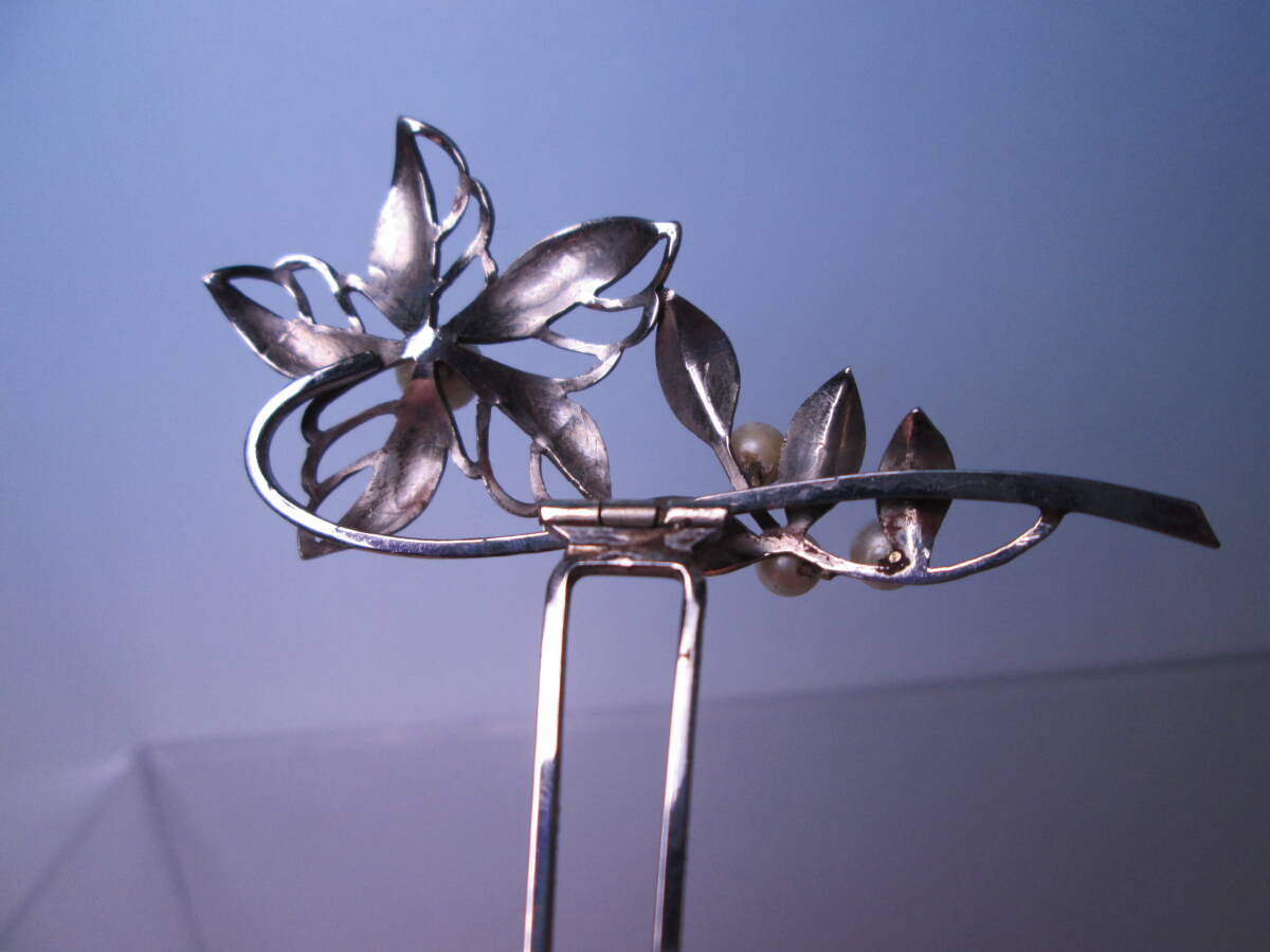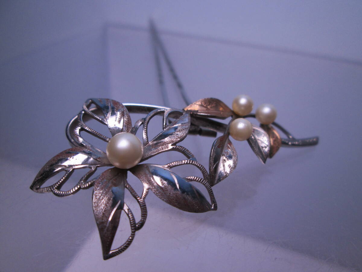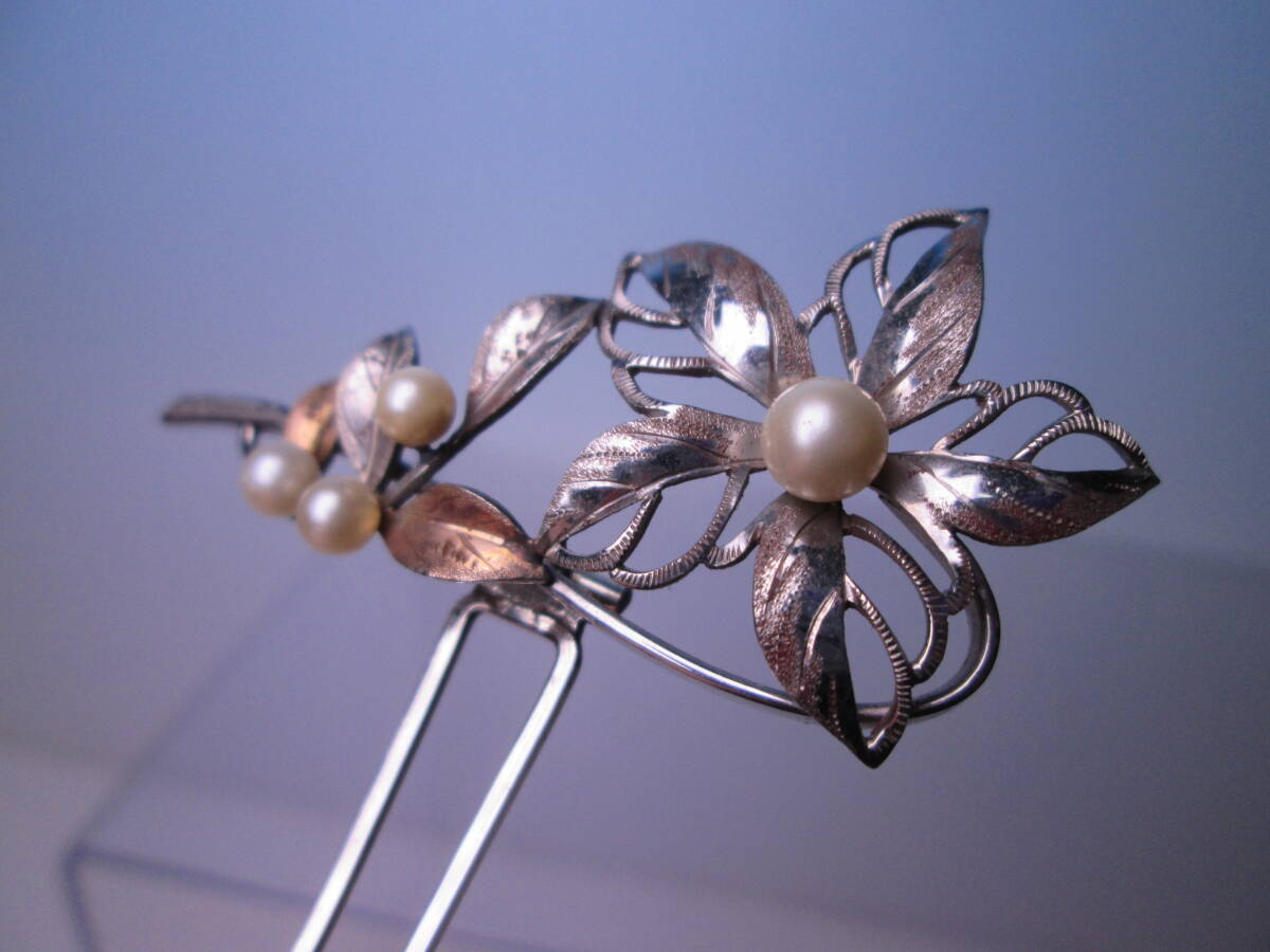 【江月】アンティーク・尚美堂 本真珠飾り 鍍金細工 花のかんざし 共ケース付