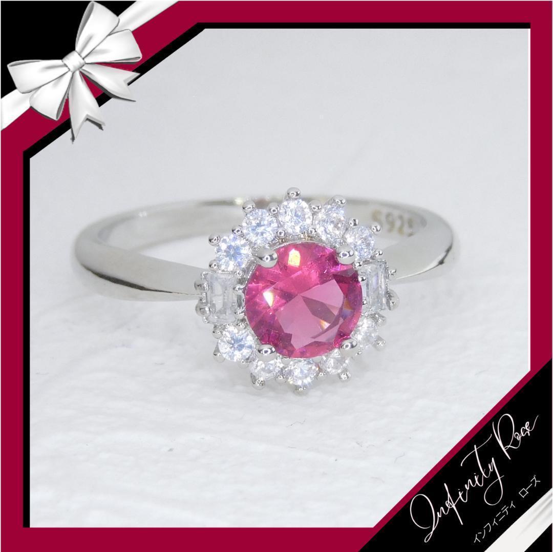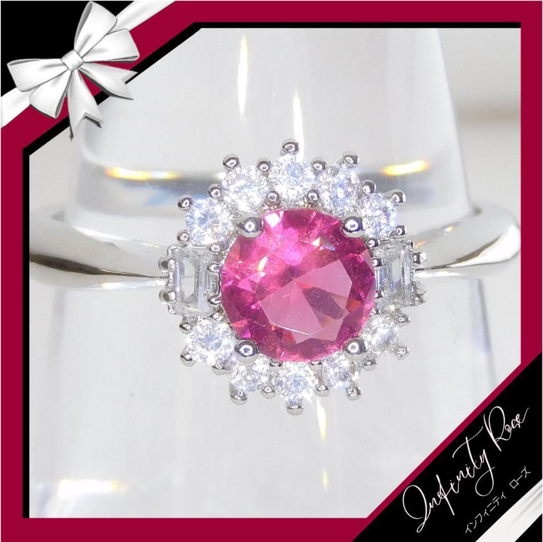 (R064S)12号 ローズピンクが素敵なコロンとクリスタルリング 爪留指輪