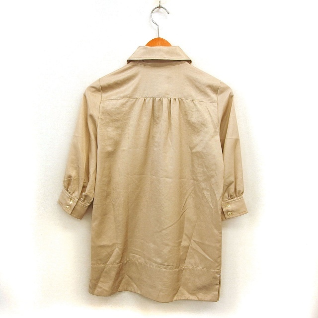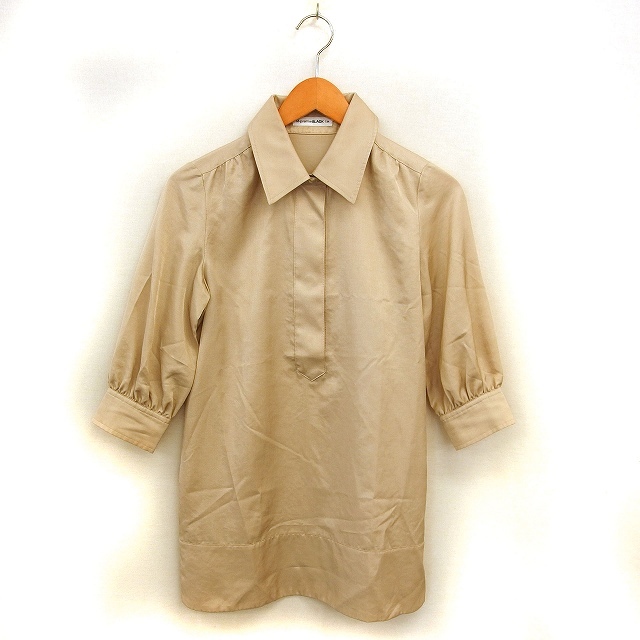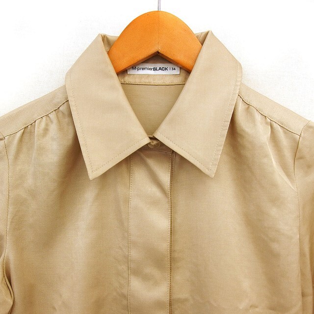 エムプルミエ ブラック M-Premier BLACK ステンカラー チュニック ブラウス 比翼仕立て スリット ギャザー ハーフボタン 七分袖 34