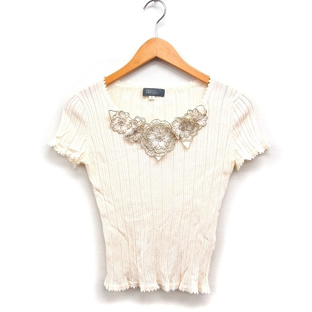 フランコフェラーロ FRANCO FERRARO アンサンブル ニット フラワーモチーフ 3 アイボリー 白 /FT32 レディース