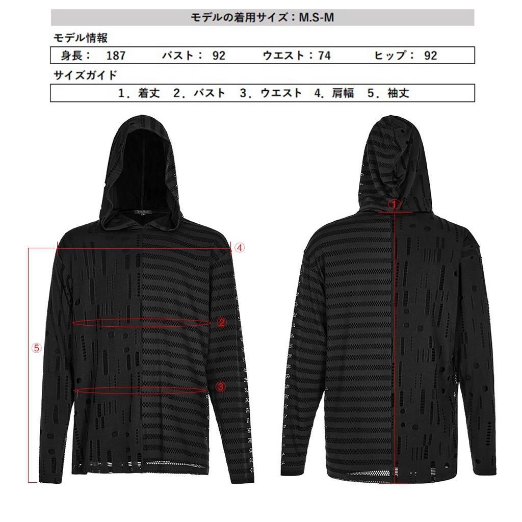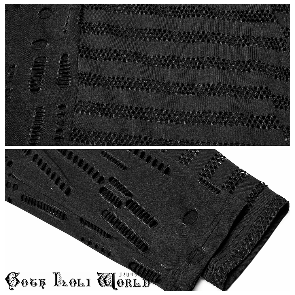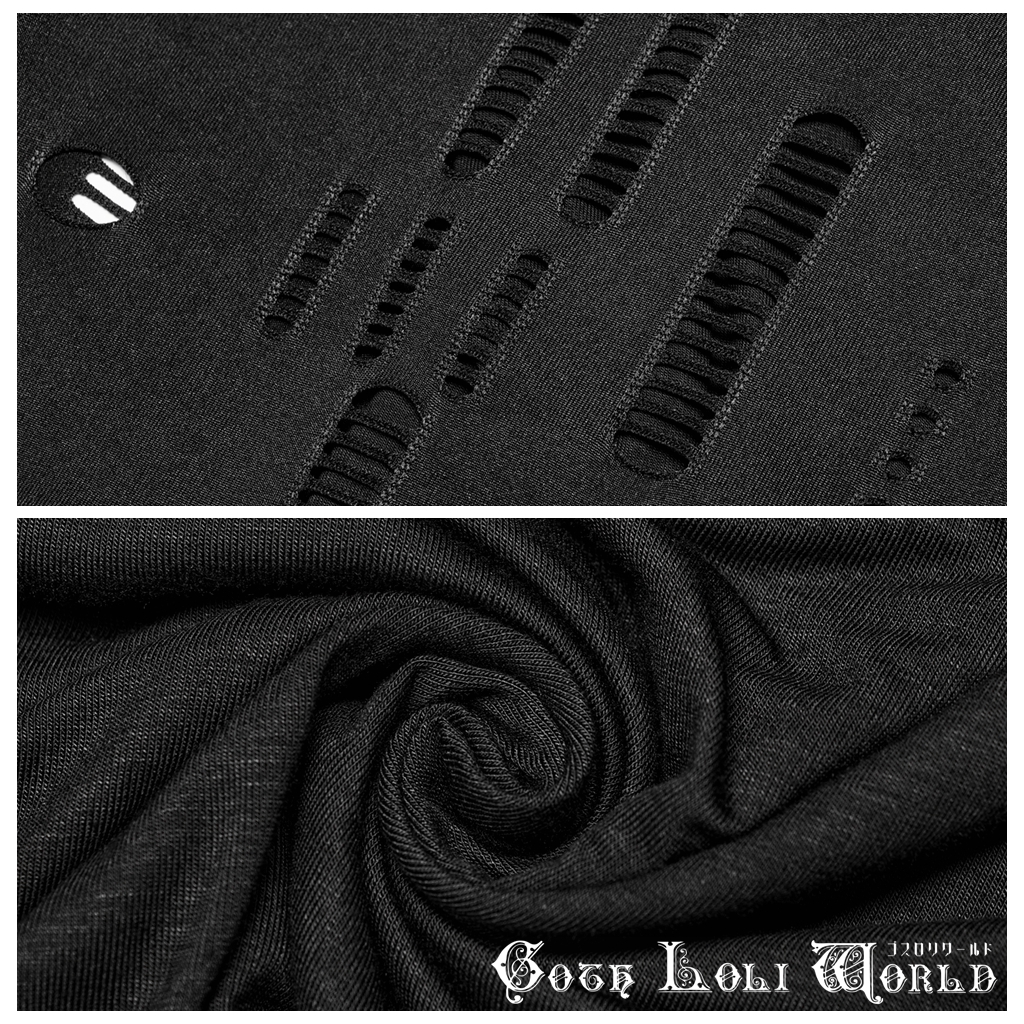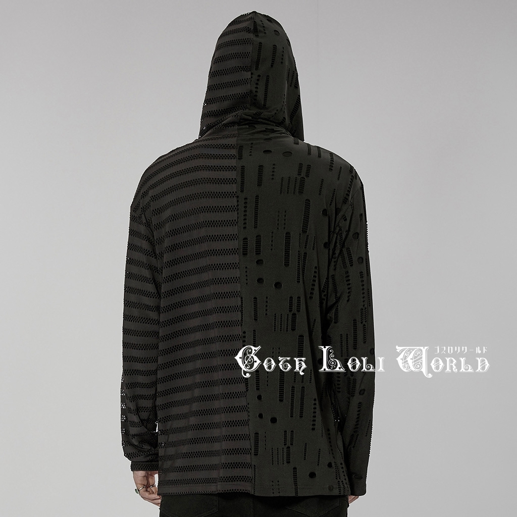 WT-737-S-M メッシュボーダーダメージフード付 カットソー ゴスロリワールド ゴシック パンク ロック ロリィタ ビジュアル系 V系