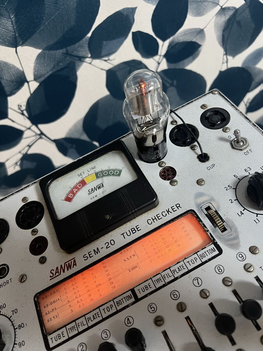 当方の試験機で同型式の未使用の真空管を試験すると80程度の値を示しますので基準として参考にしてください。