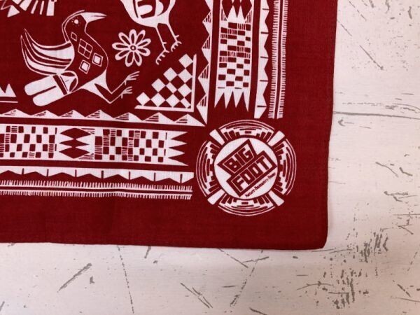 00's オールド BIG FOOT ビッグフット 現BESS ログハウス企業物 アウトドア グッズ 手拭い ペイズリー バンダナ ハンカチ 赤