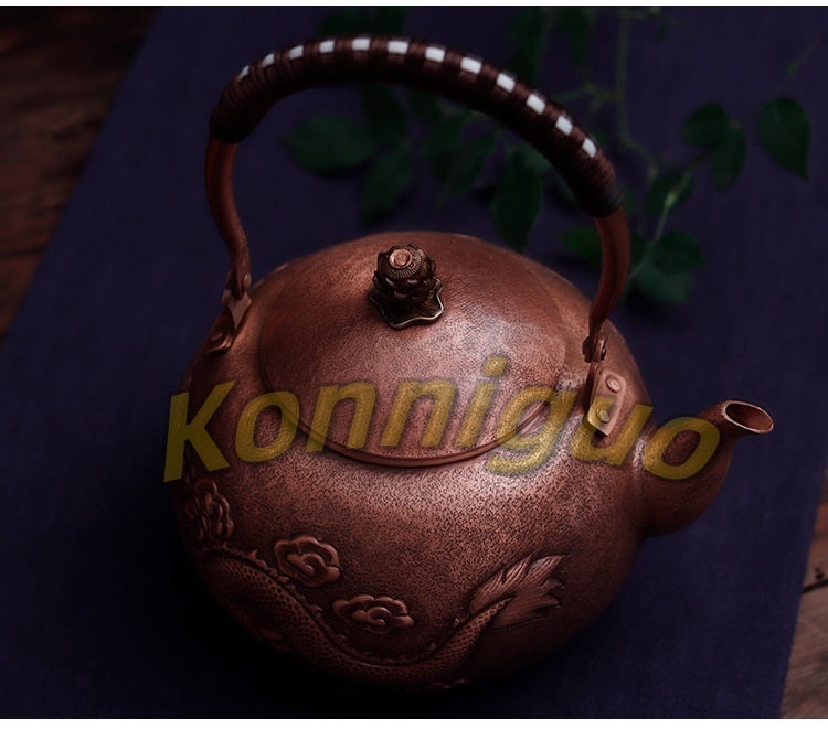 龍絵柄付き 手作り 銅やかん 塗装なし 純銅ティーポット 赤銅 お茶煮るティーポット GY90
