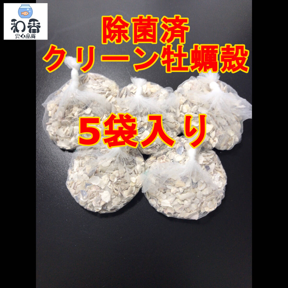 【水質安定 除菌済】クリーン牡蠣殻(かきがら) 5袋 ★ネット入り★ ろ材 魚飼育用 めだか 金魚 貝 カキガラ バクテリアPSB クロレラ 中和