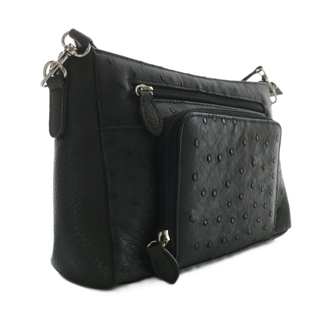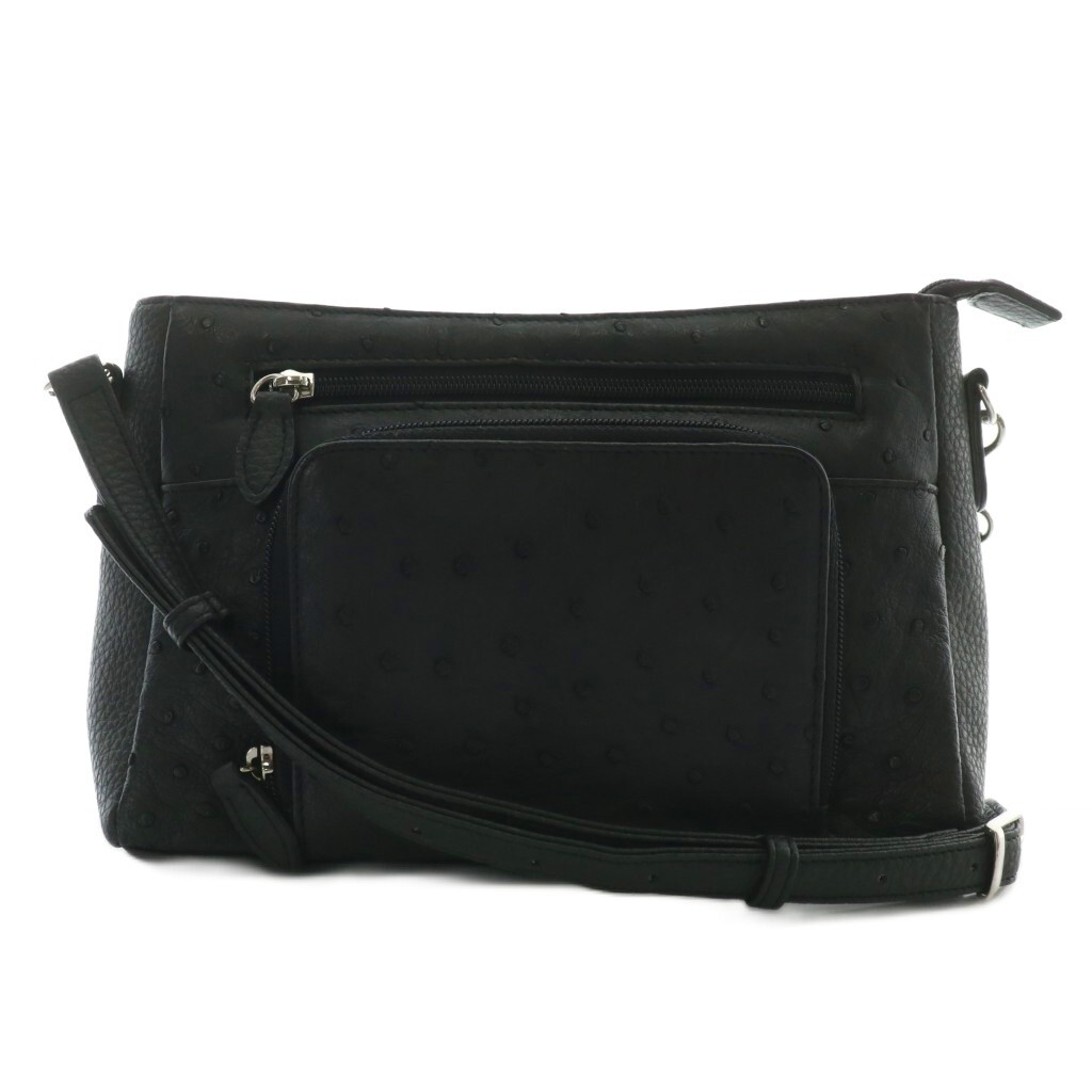 ノーブランド ショルダーバッグ オーストリッチ レザー 黒 ブラック /XZ ■GY11 レディース