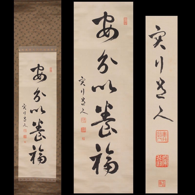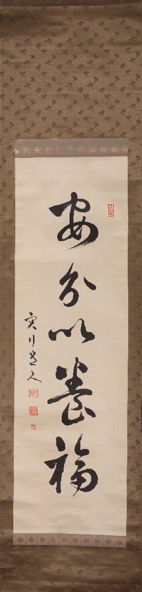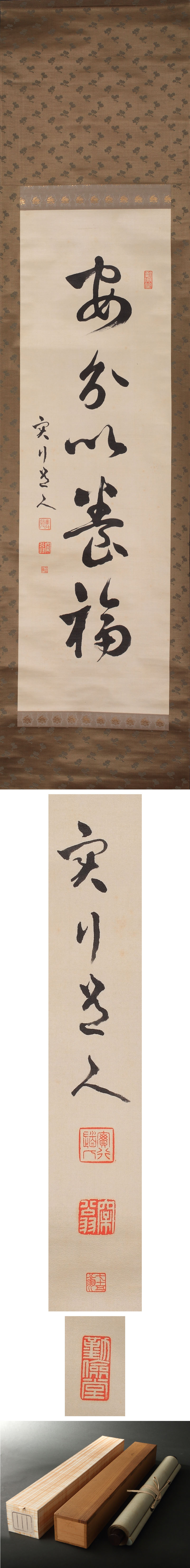 【模写】委託HK◇安田善次郎(安田財閥祖) 一行物「安分以養福」(掛軸 掛物 茶掛 禅語 揮毫 実業家 金融 安田財閥 茶事 茶席 床の間 掛字)