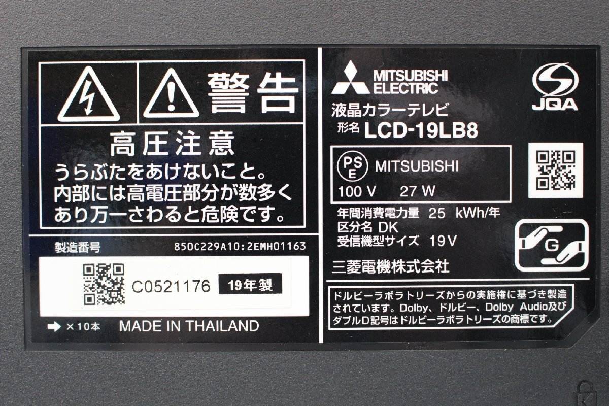 ★本州送料無料★19型液晶テレビ★三菱★LCD-19LB8★2019年製★#060917