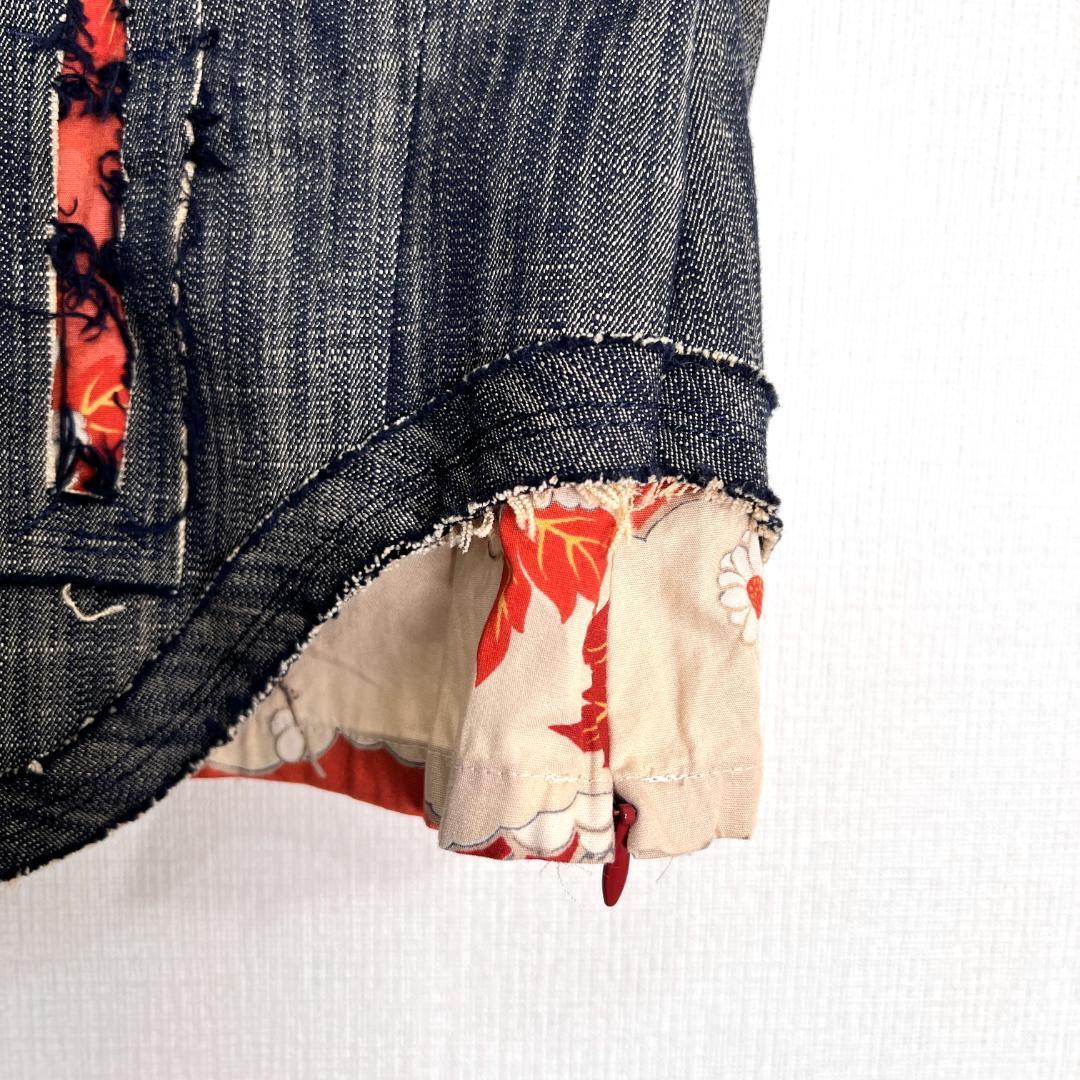 女性用のデニム系裏地は花柄のベスト デニムジャケット トップスです。中古品ですが目立つような傷や汚れもなくまだまだ使っていただけます。