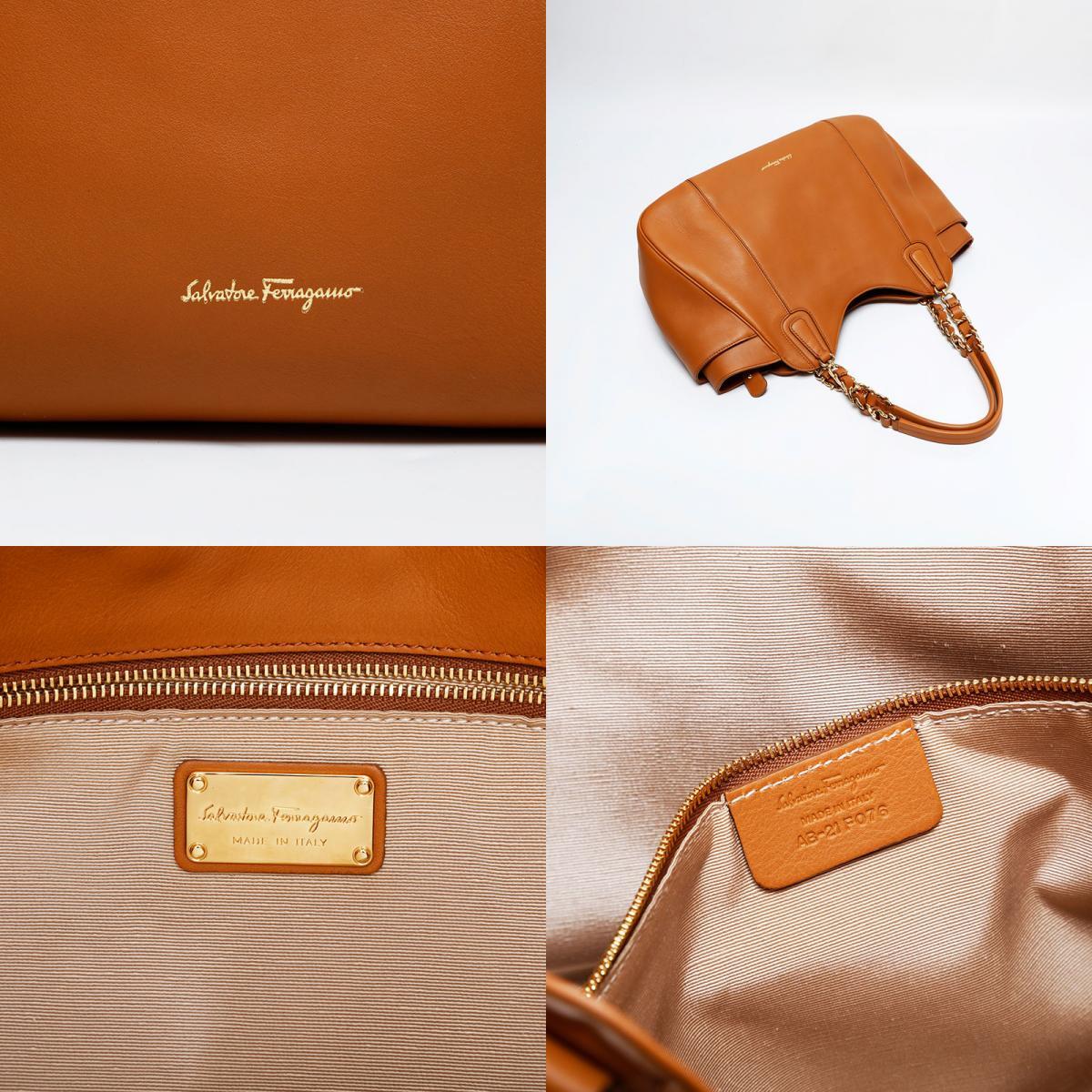極美品 サルヴァトーレフェラガモ Salvatore Ferragamo チェーントート ハンドバッグ ブラウン WS21788