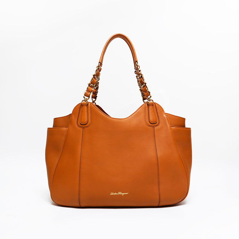 極美品 Salvatore Ferragamo チェーントート ハンドバッグ ブラウン