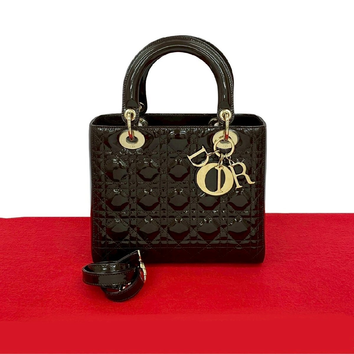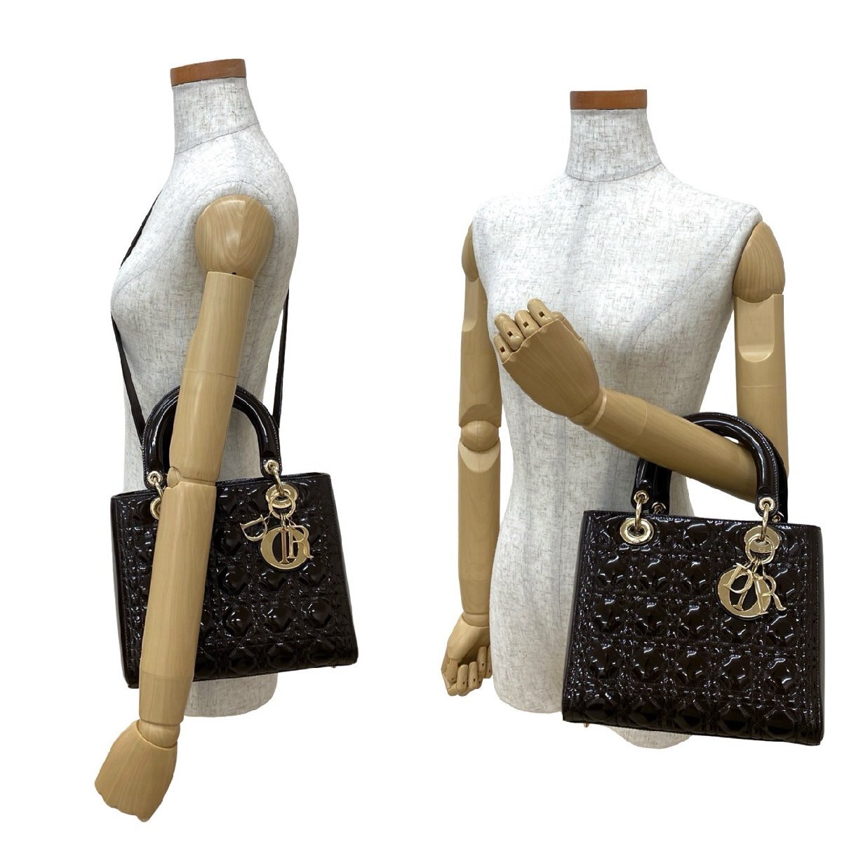 ほぼ未使用 Christian Dior ディオール レディディオール カナージュ パテントレザー 2way ハンドバッグ ショルダーバッグ ブラウン 58888