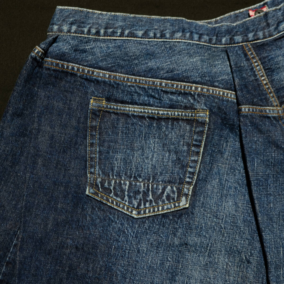 | 商品説明 | 【SIZE】 02(平置き約37cm) 【COLOR】 インディゴ 【DESCRIPTION】 デニムダンガリーの変形デニムスカート ジーンズを解体して再構築したリメイク風デザイン 白耳デニムでビンテージのような良い色落ち加工が施されています。 ウエスト内側にサイズ調整用ゴム入り 汚れやダメージなく状態良好です。 |