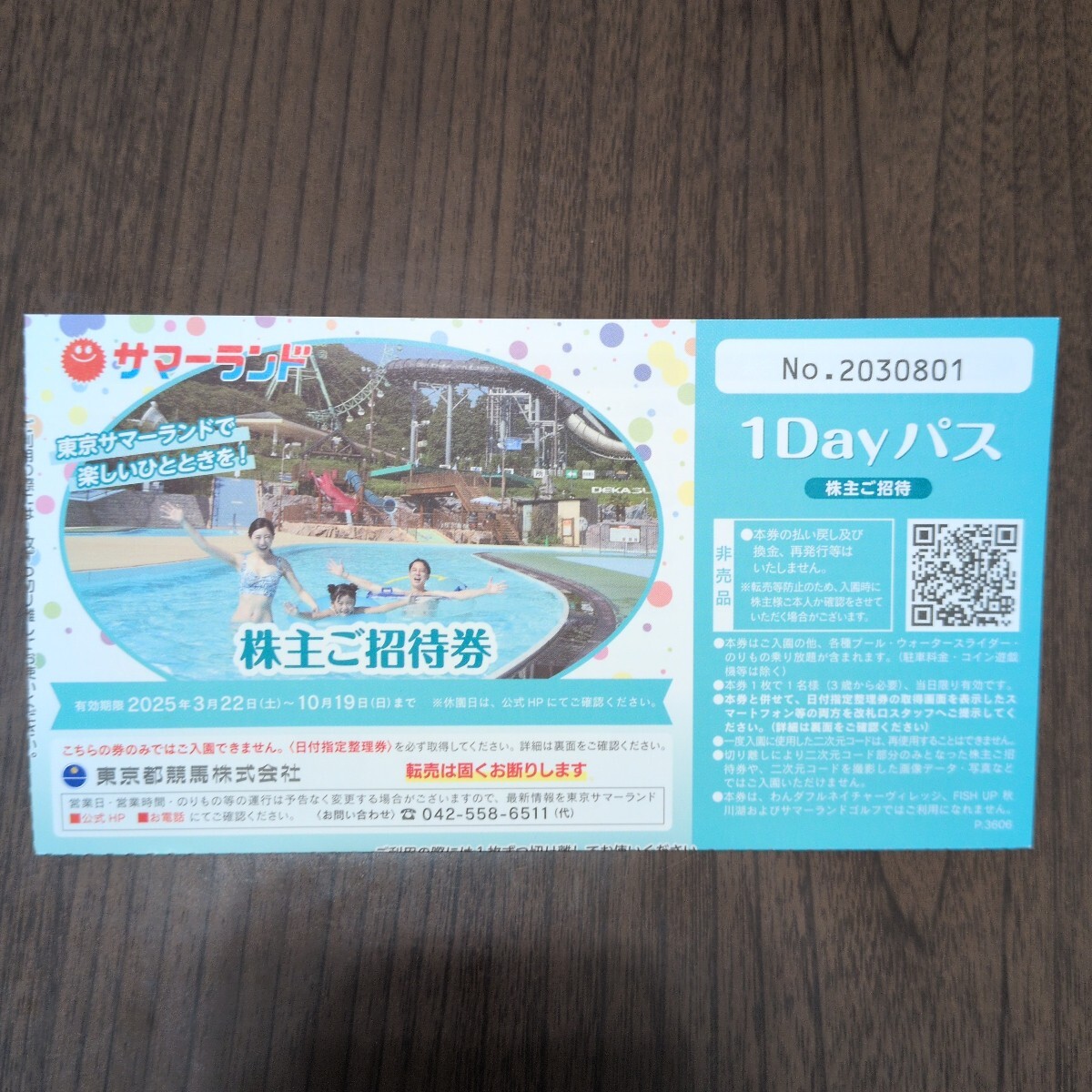 サマーランド フリーパス券1枚になります。