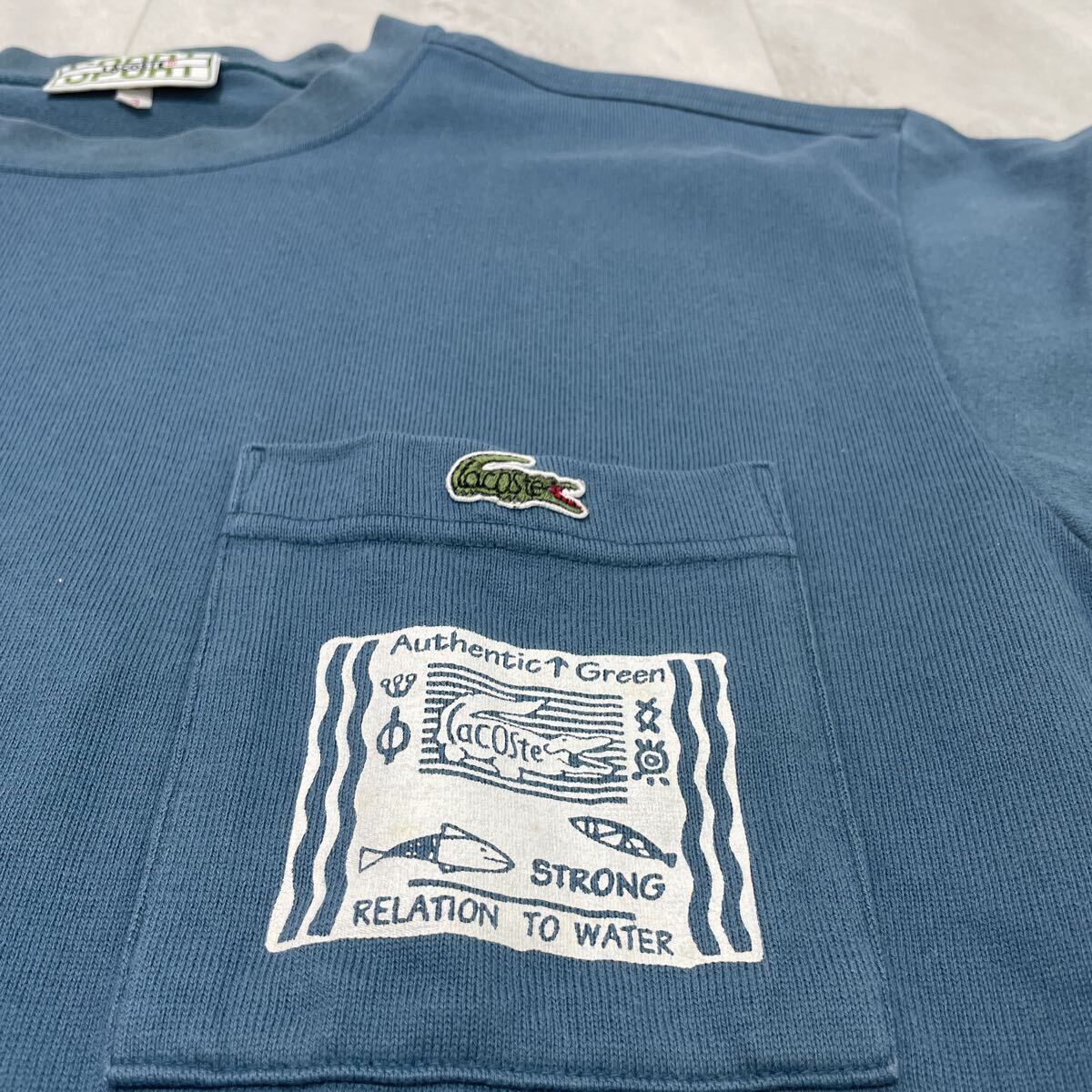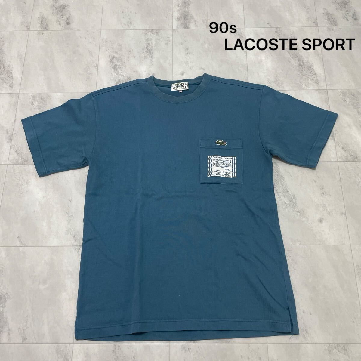 90s LACOSTE SPORT ラコステスポーツ Tシャツ T-shirt 半袖 緑ワニ ポケットT プリント 90年代 文字ワニ 80s ヴィンテージ ブルー サイズ3 M 玉ss4208