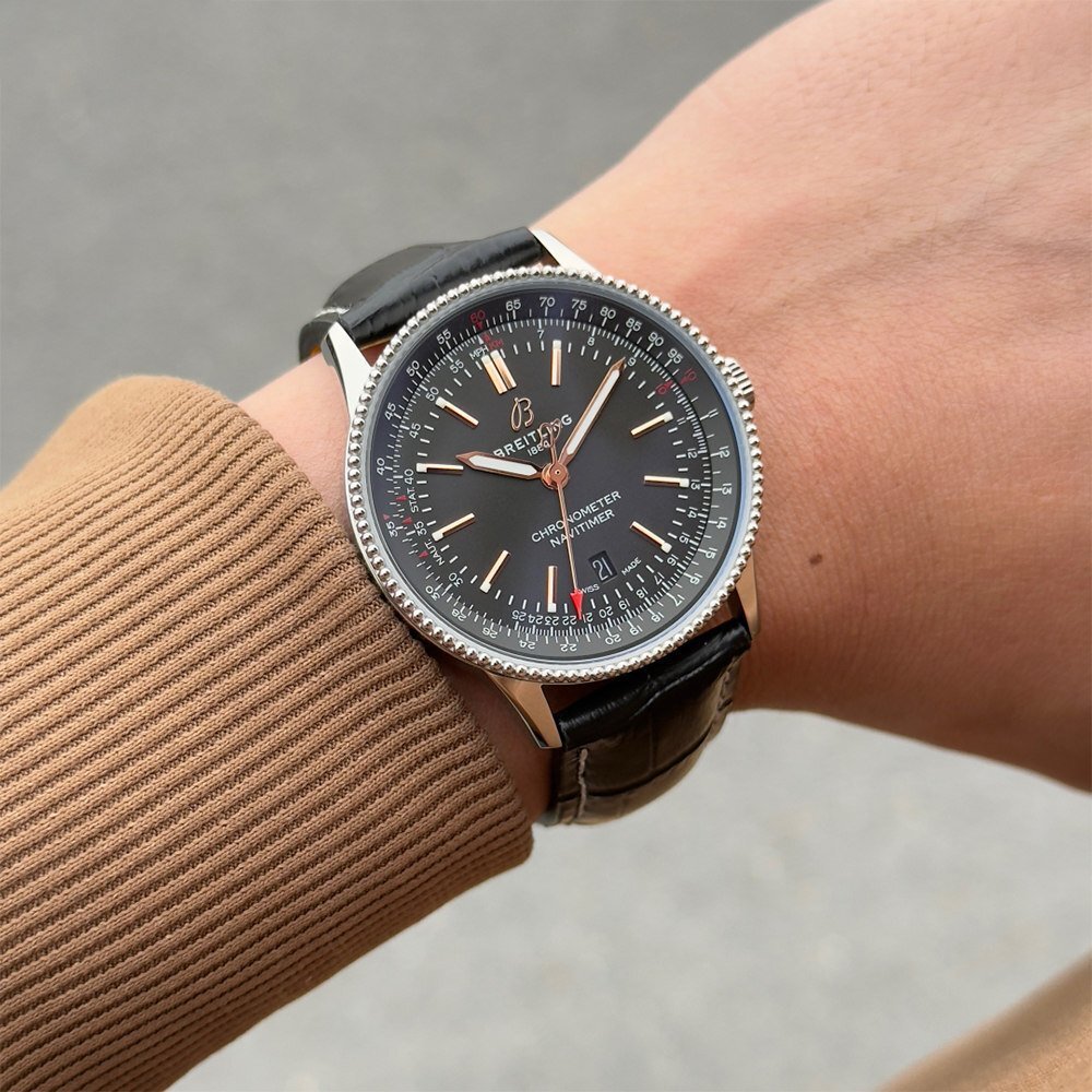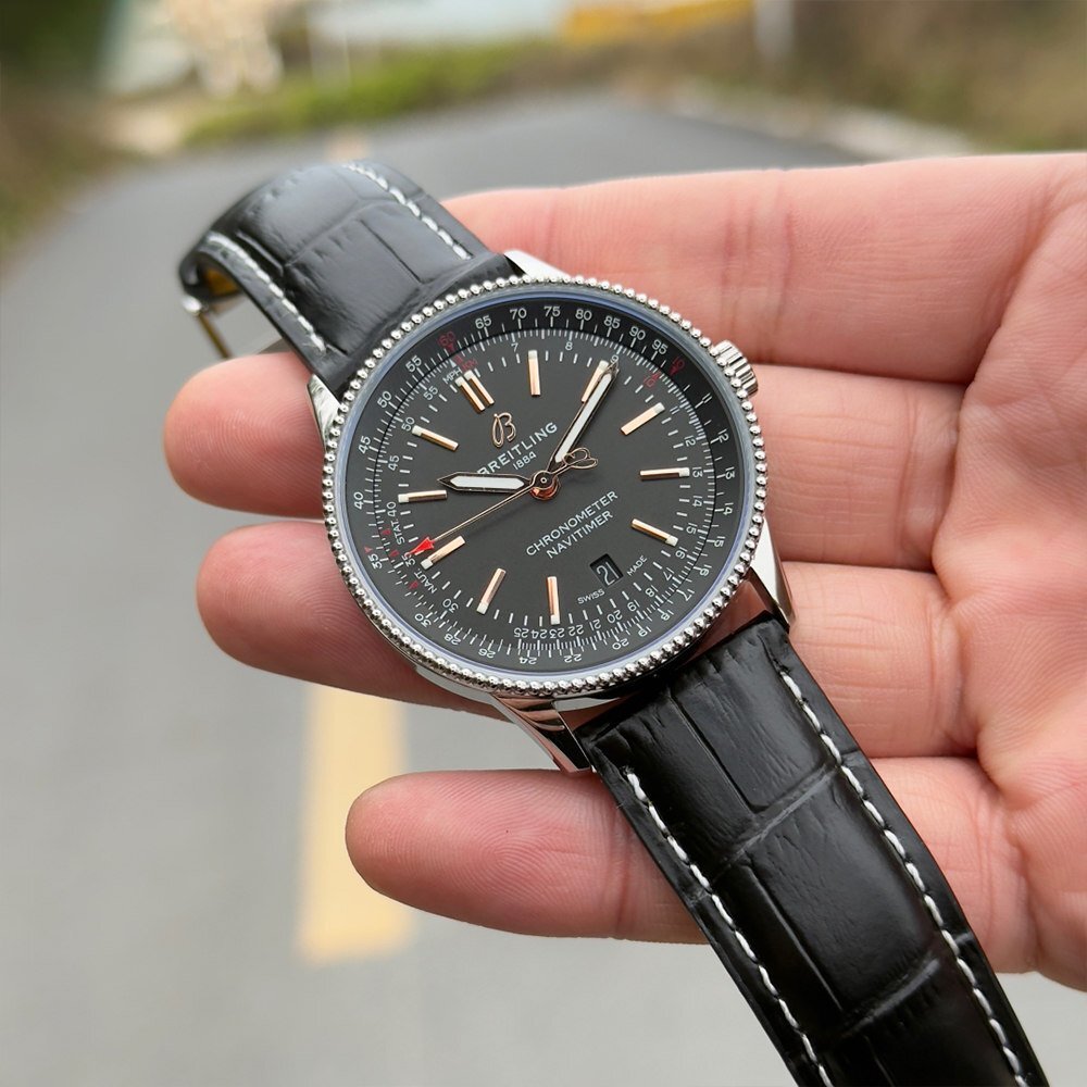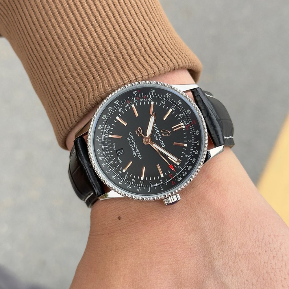 【 商品詳細】 | ブラウン:BREITLING 型号:A17326241B1P1 素材: ステンレススチール ムーブメント: 自動巻き ベルト:黒(レザー) 文字盤: 黒 ケースサイズ:41mm 腕周り最大:約22cm 付属品:ブランド保存箱 |