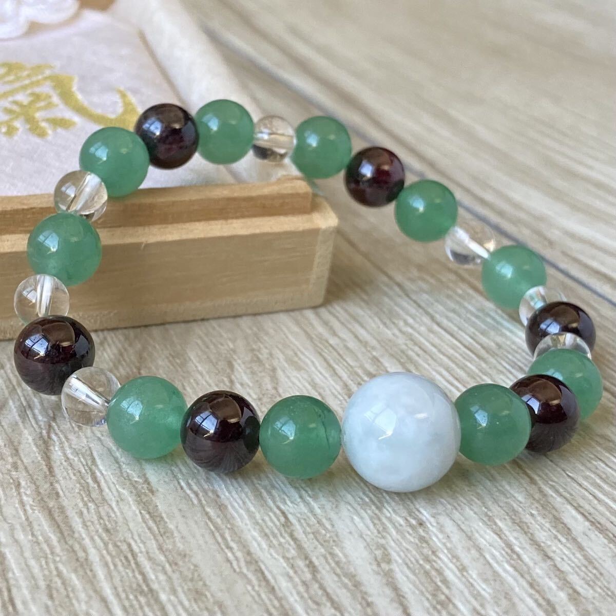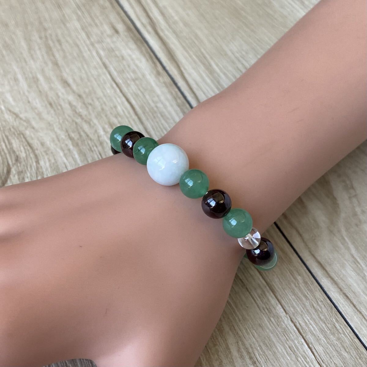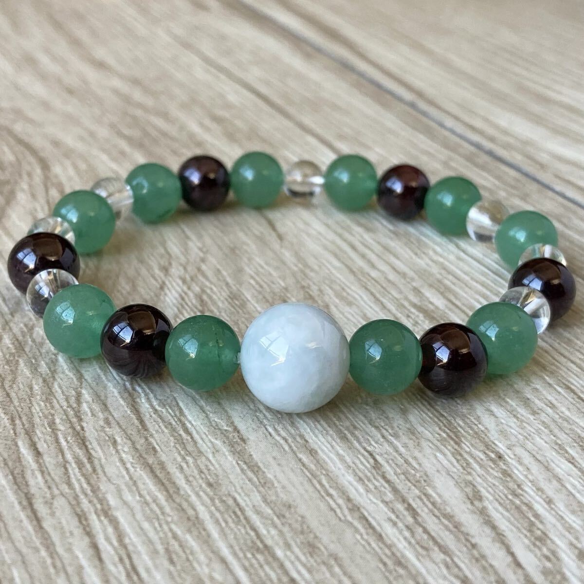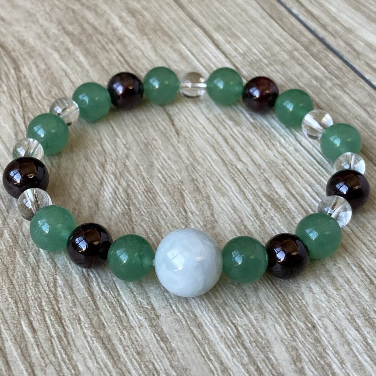 これらの組み合わせでストレスなどを感じる方の心に深呼吸をしたかのような癒しと安らぎを与えてくれるようなブレスレットです