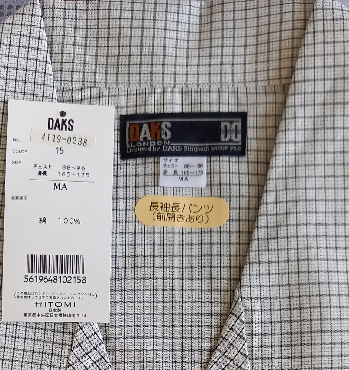 ◆新品★4割引き◆DAKS・紳士用・長袖パジャマ★綿100%・MAサイズ★パンツ、前開きあり◆日本製★送料600円