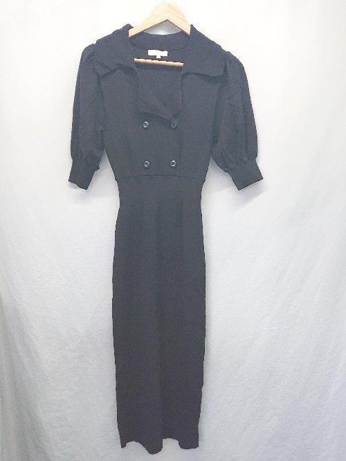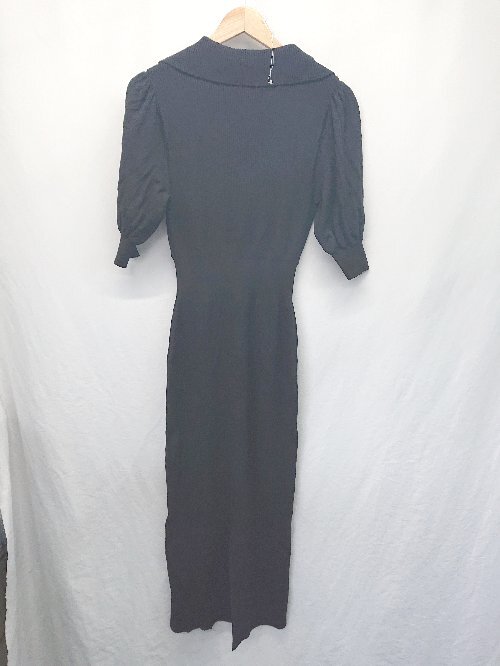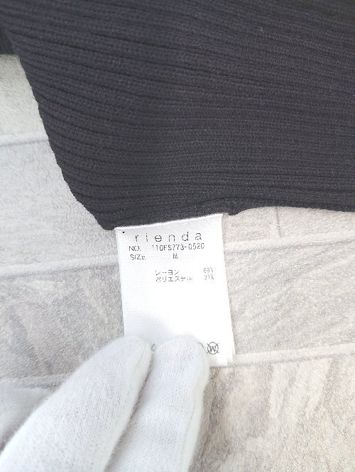 ◇ ⊂ rienda リエンダ 袖切替 五分袖 ロング リブニット ワンピース サイズM ブラック系 レディース E