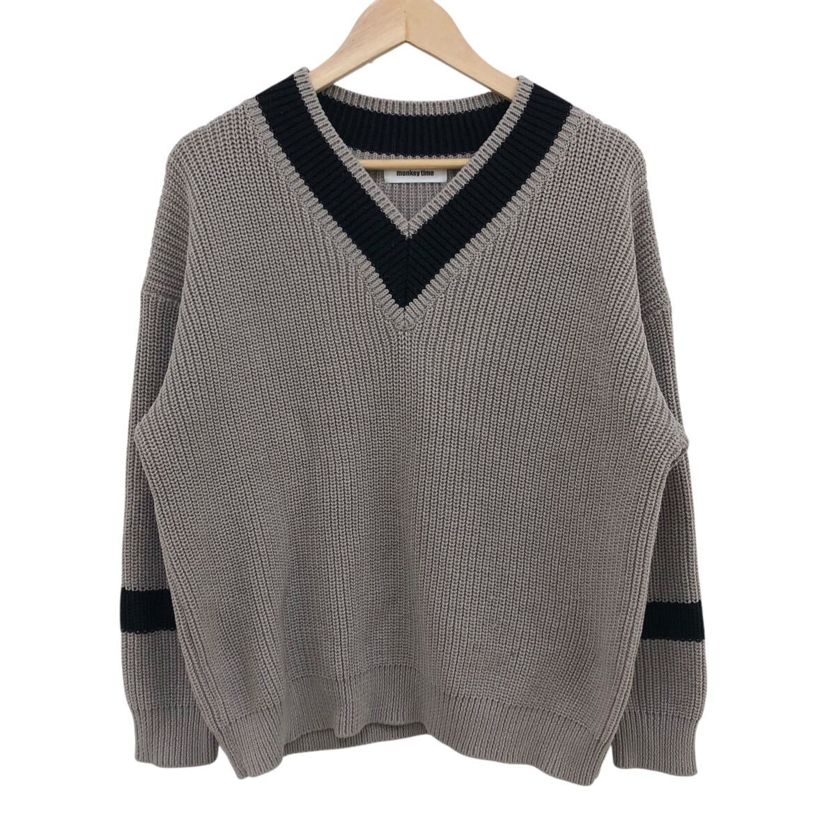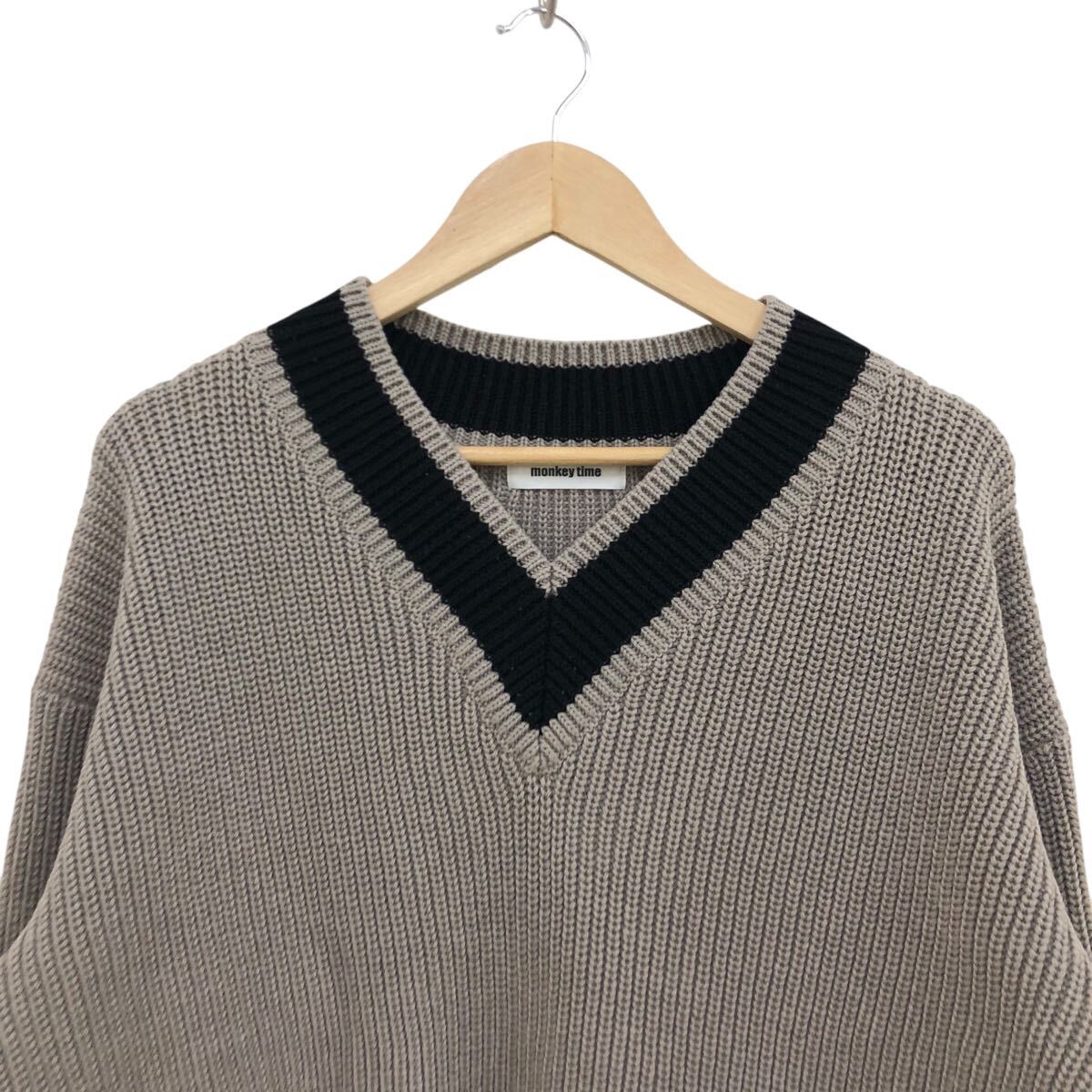 8D629-83 monkey time モンキータイム ユナイテッドアローズ 長袖 ニット セーター トップス Vネック グレージュ系 メンズ S