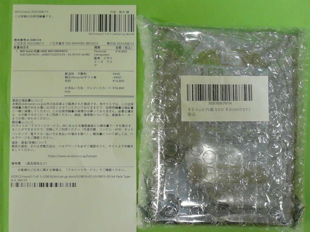 最高の信頼性、超高速 Goldシリーズ WD1005FBYZ 1TB,128MBキャッシュ 未開封品 | ||||||||