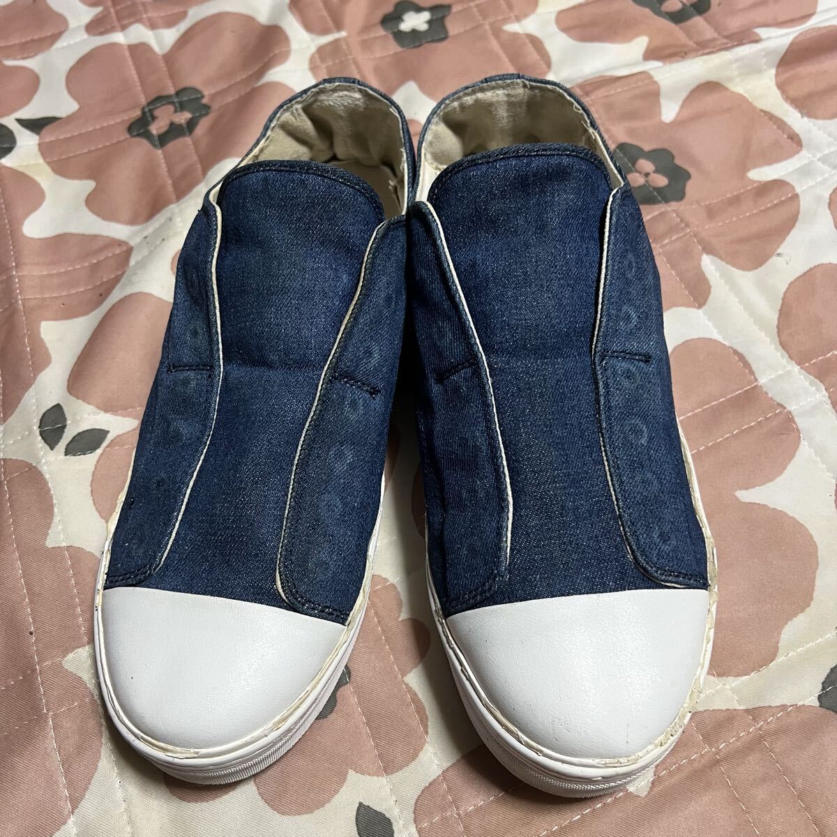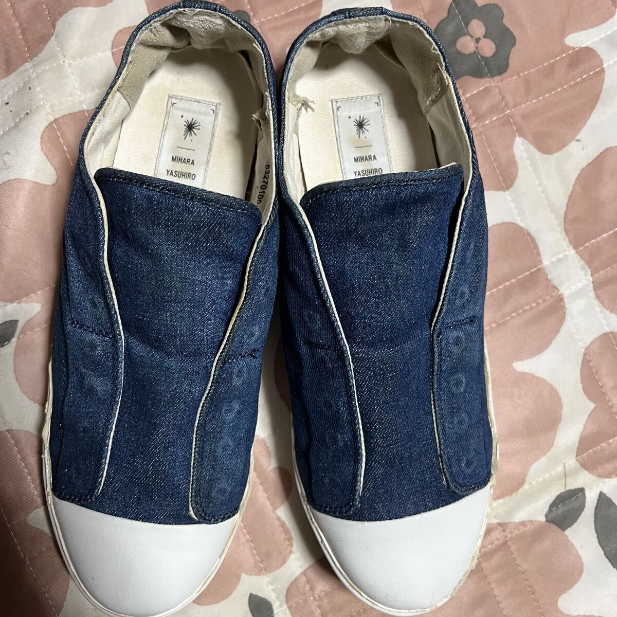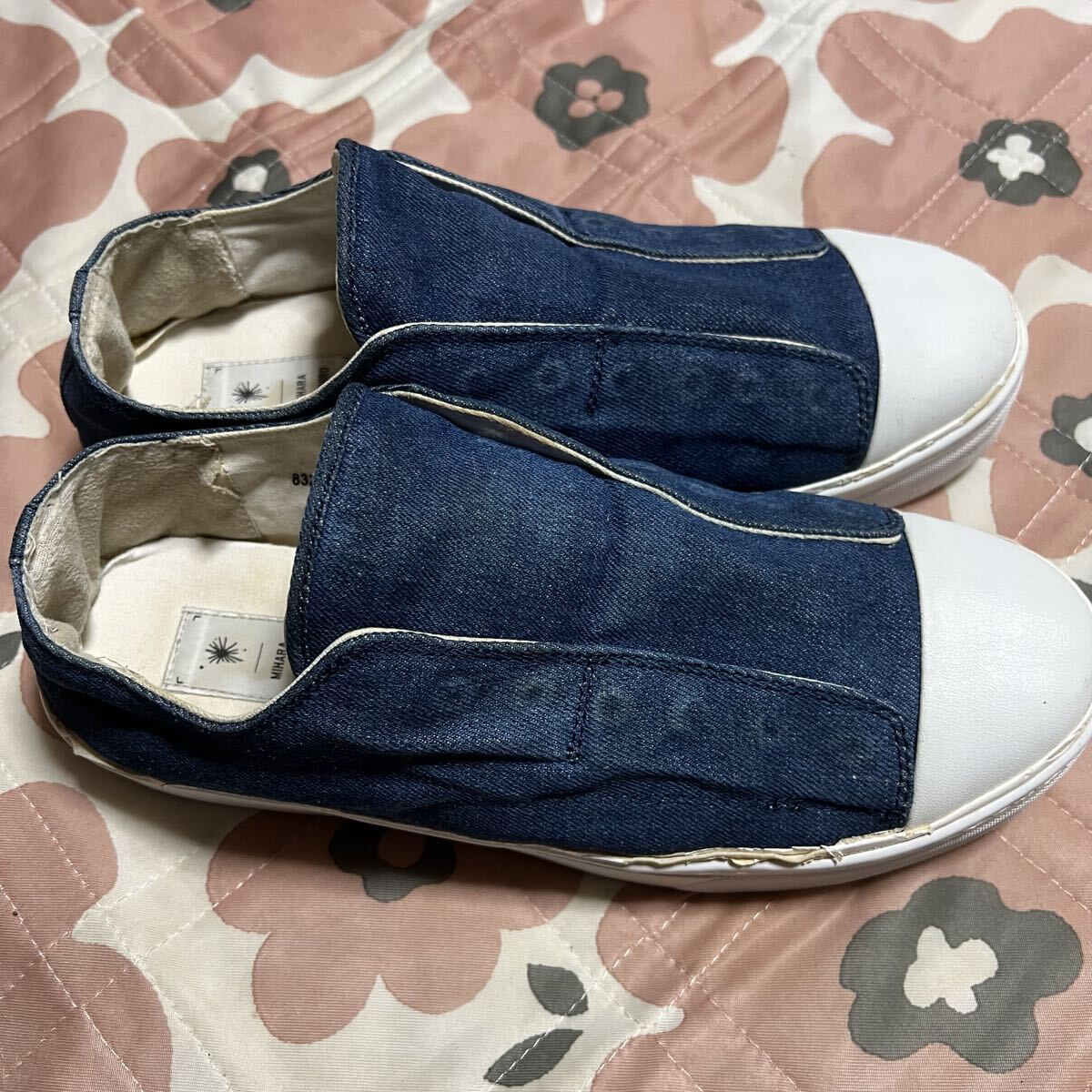 ミハラヤスヒロ MIHARA YASUHIROのデニム素材のスリッポンです。紐なしのスリッポンです。厚底です。