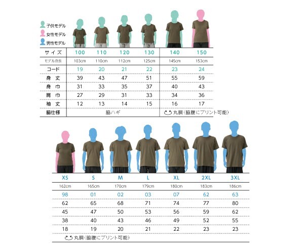 ②本文に記載しておりますサイズですが、当店のTシャツ全て海外生産となっておりますので、片面1~2センチ前後程度の誤差は生じますのでご了承ください。