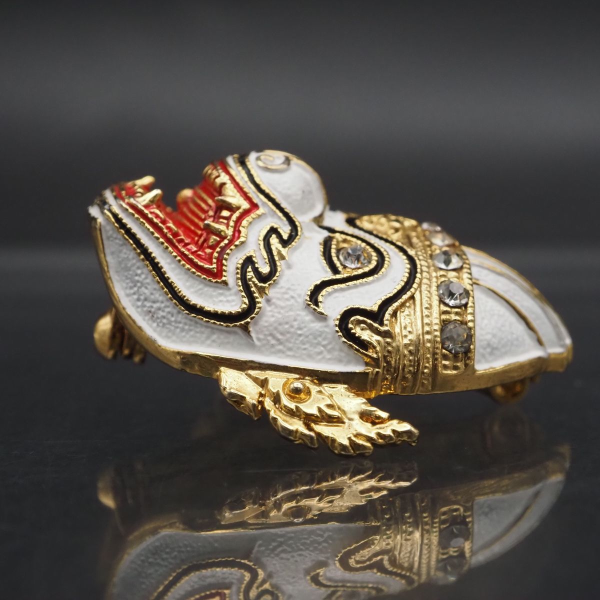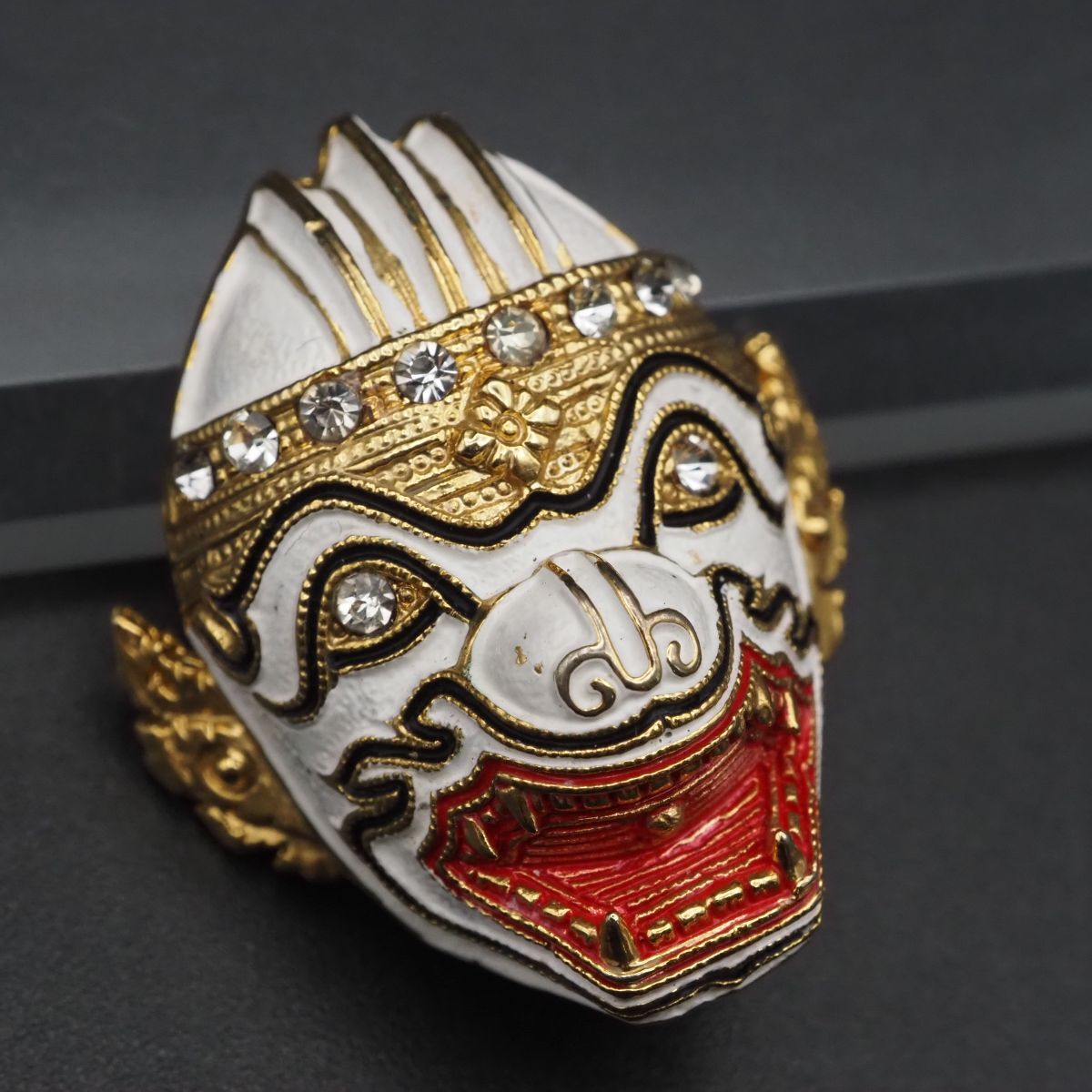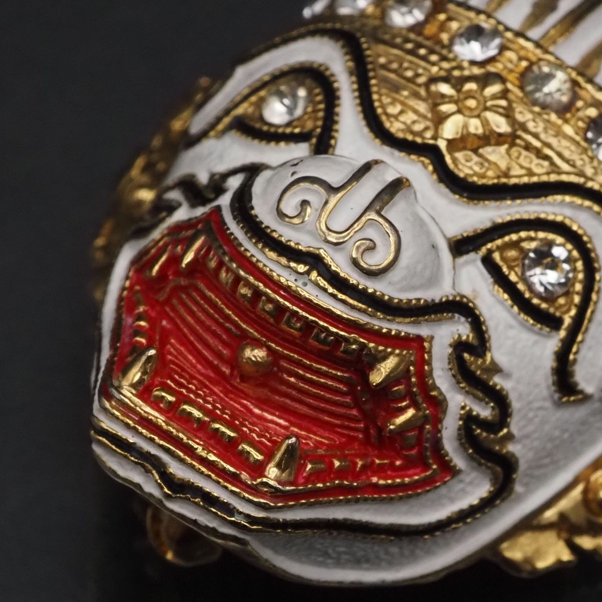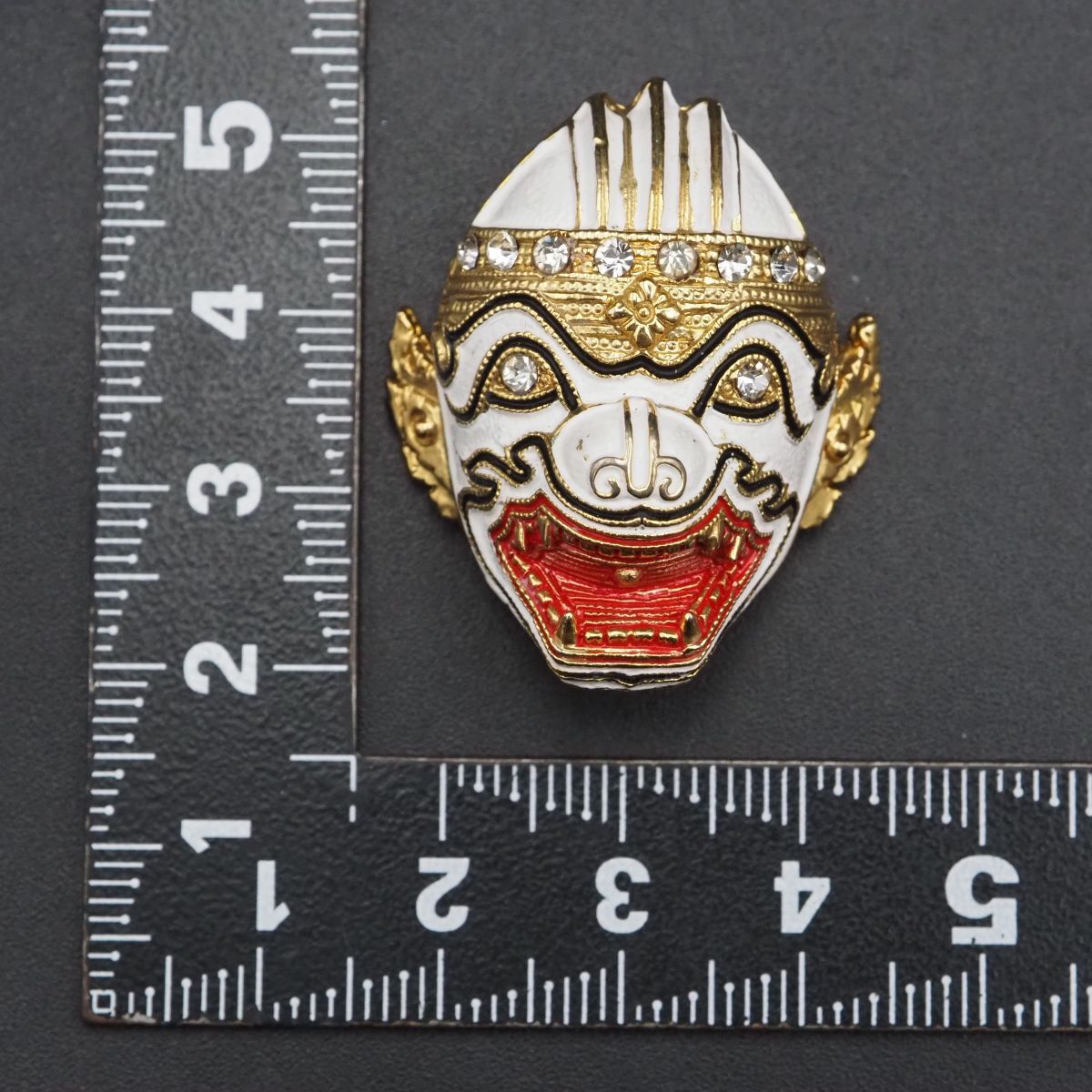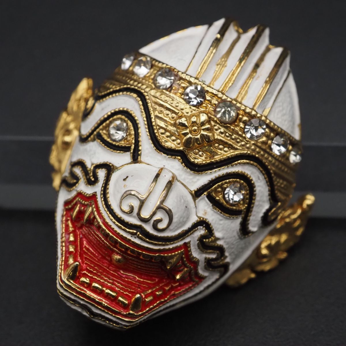 F243 ブローチ タイ お面 ハヌマーン 猿将 コーン 仮面劇 ラインストーン ゴールド デザイン コスチュームジュエリー