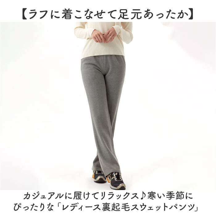 商品説明 | ・・【ラフに着こなせて足元あったか】 ・カジュアルに履けてリラックス♪寒い季節にぴったりな「レディース裏起毛スウェットパンツ」。 ・【裏起毛仕様であったかキープ】 ・ふっくらポカポカ裏起毛素材!包み込むような温かさと、柔らかな肌触りが魅力。 ・【締め付けがなくストレスフリー】 ・ボディラインに優しく馴染む、伸縮性のある生地。動きも妨げず、ウォーキングなどのお供にも。 ・【自分サイズに心地よくフィット】 ・ウエストはゴム紐仕様で、簡単に調節が可能。お好みのサイズ感で着用できる! ・【色んなシーンで使える万能パンツ】 ・表はスウェット生地で、軽やかな着心地。屋外での防寒、自宅でのルームウェア使いも。 ・【小物を入れておけるポケット】 ・パンツの左右とバックにはポケットを配置。左右ポケットの切り替えラインがポイント。 ・【着こなしやすいベーシックカラー】 ・どんなトップスとも合わせやすく、年代問わず着用できるカラーリング&シンプルデザイン。 |