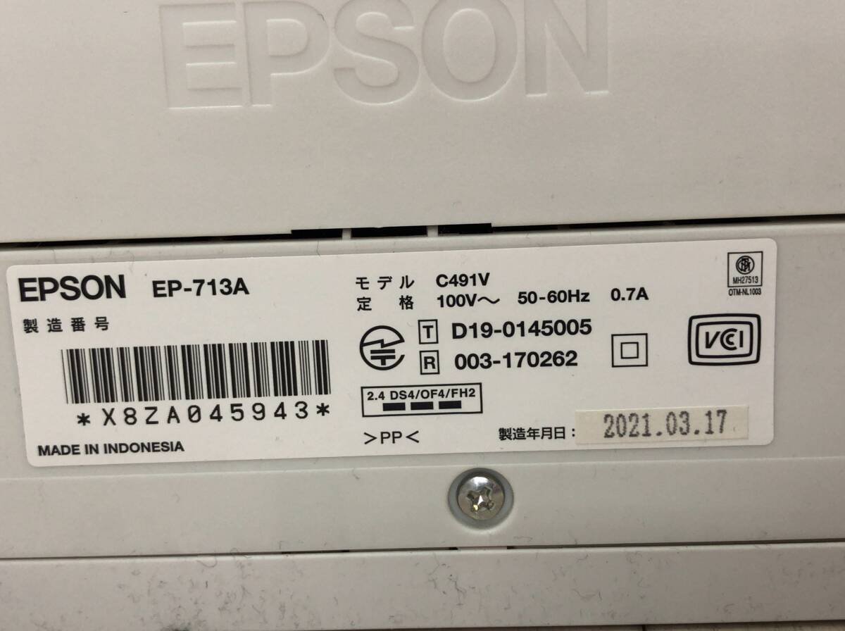 EPSON エプソン カラリオ A4インクジェットプリンター 複合機 EP-713A ホワイト 2021年製 インク5色 セット SS-411866