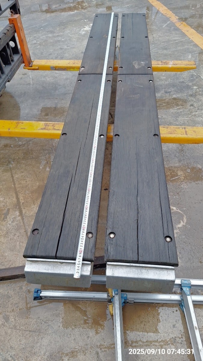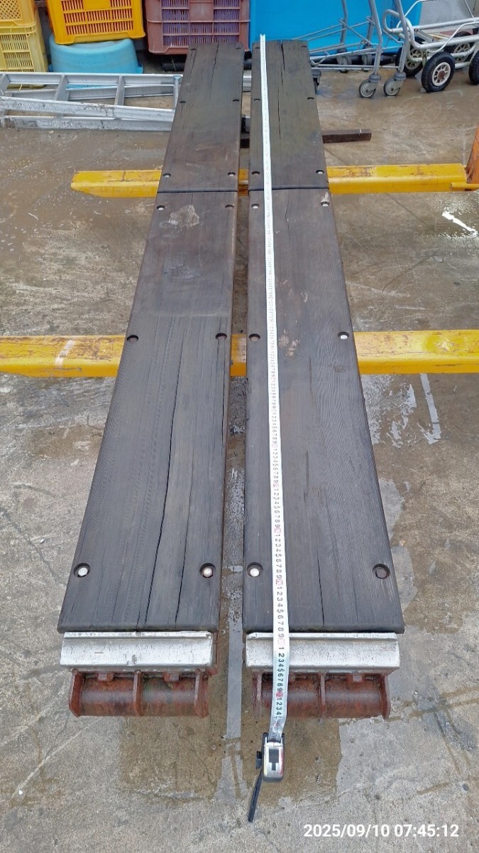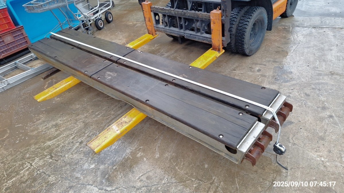 アルミブリッジの3m×約24cm×高さ約17cmになります。あとは画像で確認下さい。引取限定になります。発送は不可です。3年くらい前に木は張り替えてます。積込はリフト等でお手伝い致します。それでは宜しくお願い致します。
