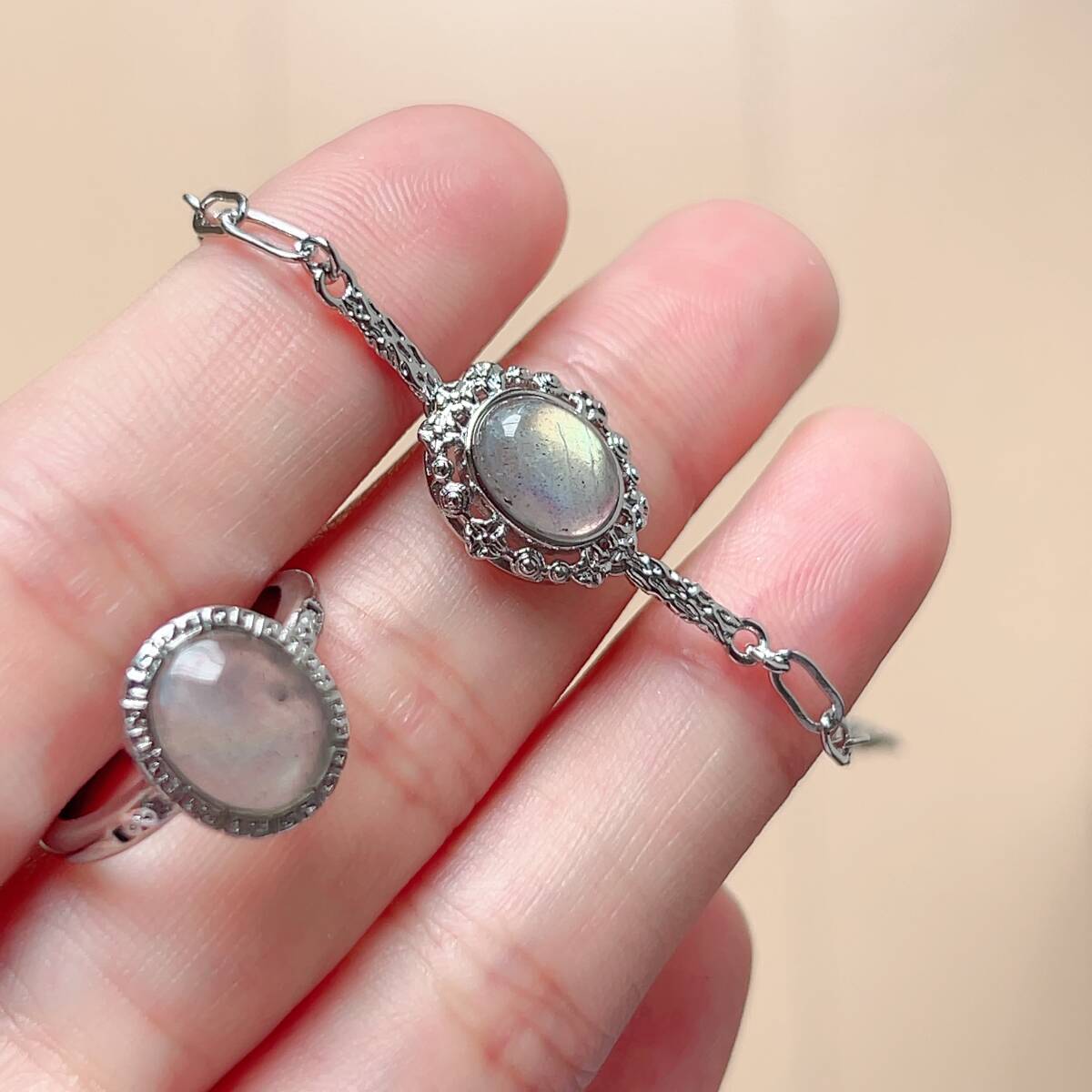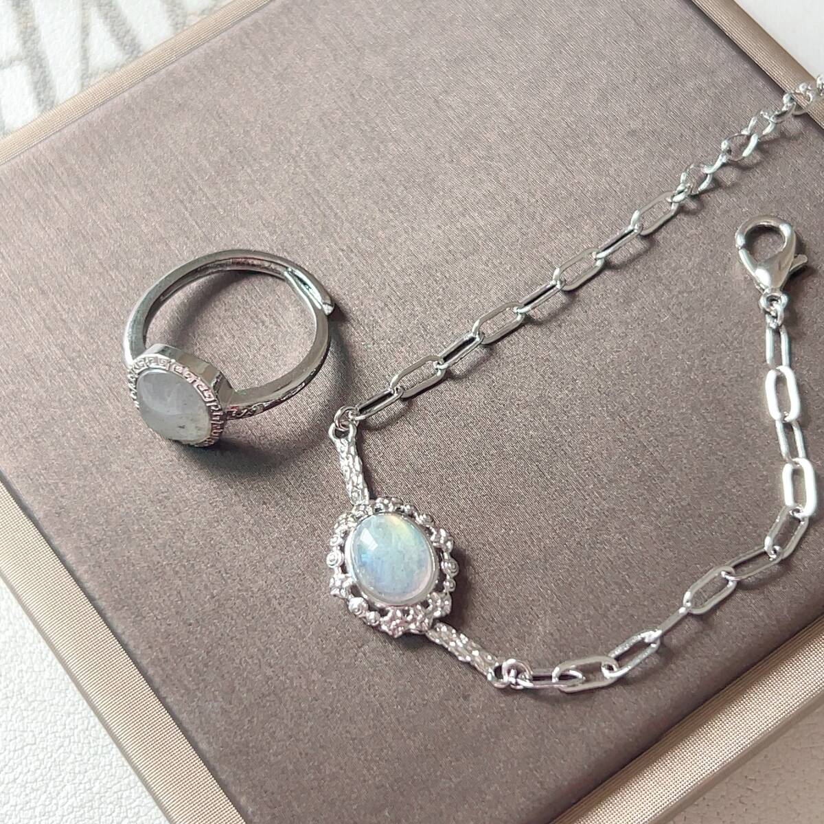 ◇グレームーンストーン◇シラー強め◇ブレスレット+リング計2点セット◇パワーストーン◇天然石◇巾着袋付き◇プレゼントにも 040S91008